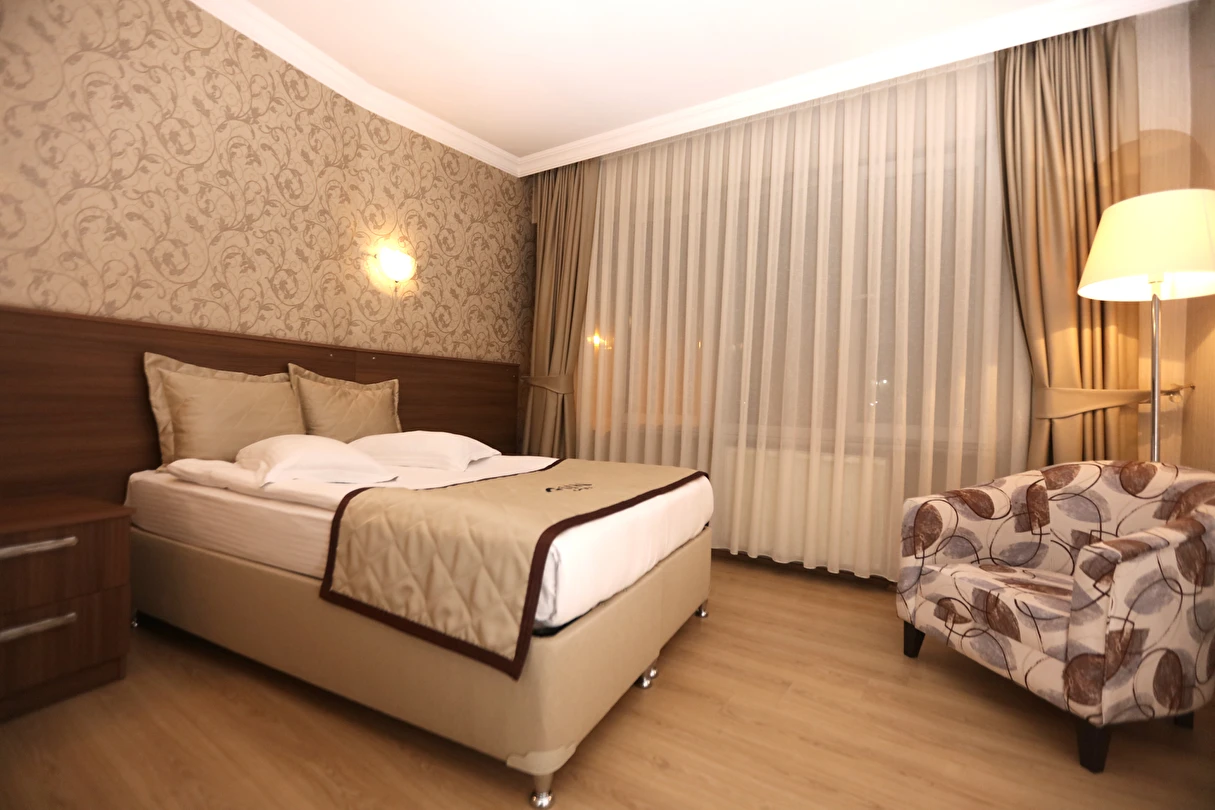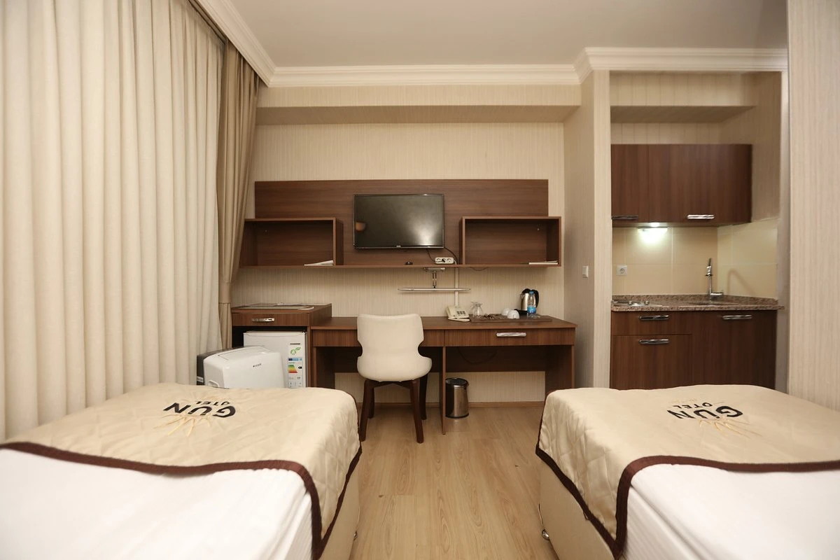 Daha Fazla GösterKastamonu şehir merkezinde iş turizm ve eğlence odaklı seyahatler için hizmet veren Gün Otel, misafirlerine ideal bir konaklama alternatifi oluşturuyor. Modern ve klasik ögelerin bir arada sunulduğu 62 odası bulunan otelin odalarında; LCD TV, minibar ve mutfak gibi olanaklar yer alıyor. Muhteşem kale manzarasına karşı enfes tatları deneyimleyebileceğin otel, alışveriş merkezine 450 metre, Kastamonu Kalesi’ne ise 5 dakikalık yürüme mesafesinde konumlanıyor.