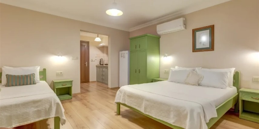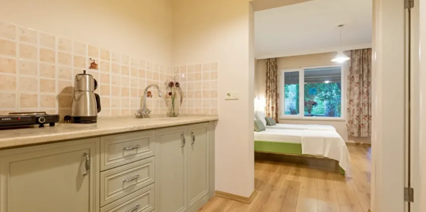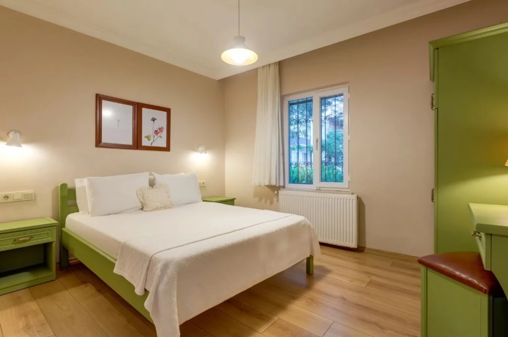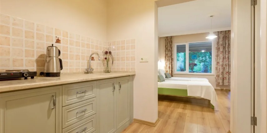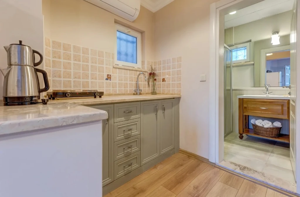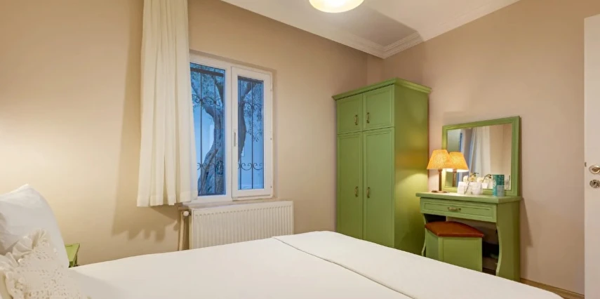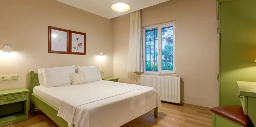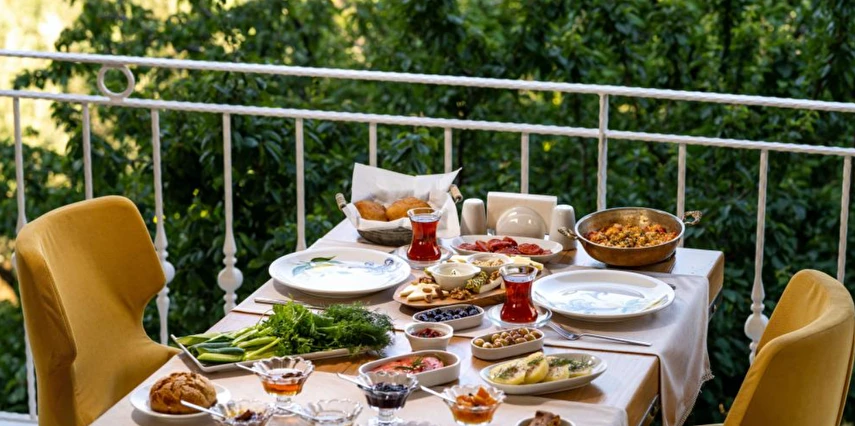 Oda & kahvaltı sistemiyle çalışan tesisimiz, apart-motel yapısı sayesinde misafirlerine özgür bir kullanım alanı sağlıyor. Dileyen konuklarımız odalarında kendi öğünlerini hazırlıyor; dileyenler ise restoranımızdan ek hizmet olarak yararlanıyor. Kahvaltımız bahçemizde yetişen mahsuller ve yerel üreticilerden temin edilen doğal ürünlerle hazırlanıyor; güne taze ve sade bir başlangıç sunuyor.