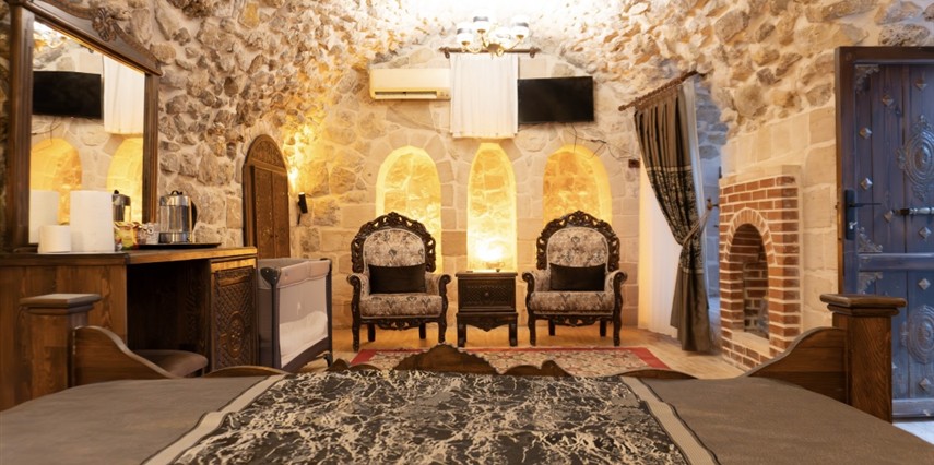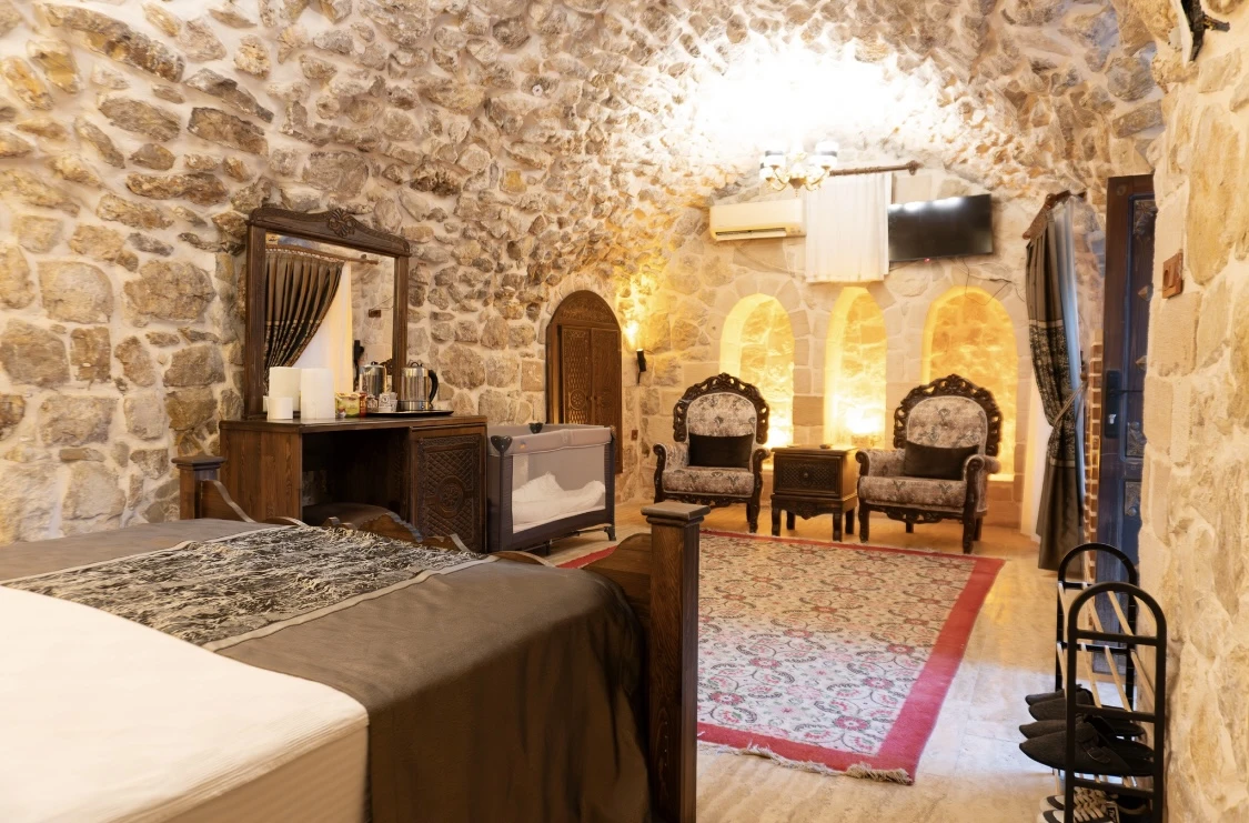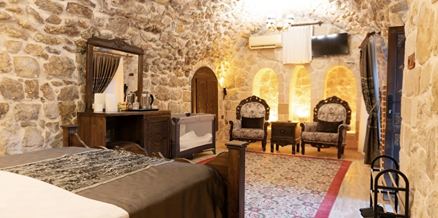 HakanBey Konağı, Mardin’in tarihi taş dokusuyla bezenmiş konak konseptinde samimi ve yerel bir konaklama deneyimi sunar. Şehir merkezine yakın konumuyla ziyaretçilere hem Mardin’in kültürel cazibe merkezlerini kolay erişimle keşfetme avantajı sağlar hem de taş mimarinin sunduğu özgün atmosferde dinlendirici bir konaklama imkânı yaratır. Konforlu odaları ve butik hizmet yaklaşımıyla kısa tatil kaçamakları veya kültür gezileri için uygun, karakteristik bir tercih sunar.