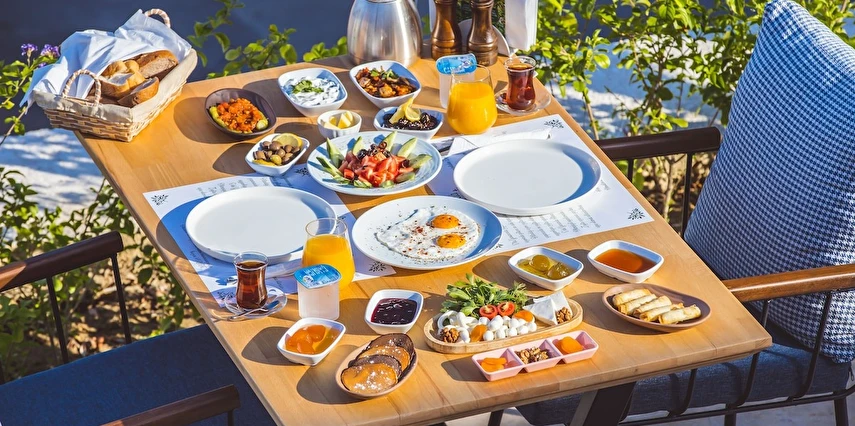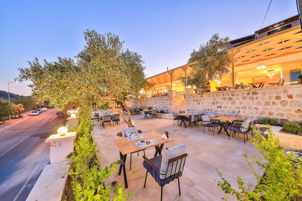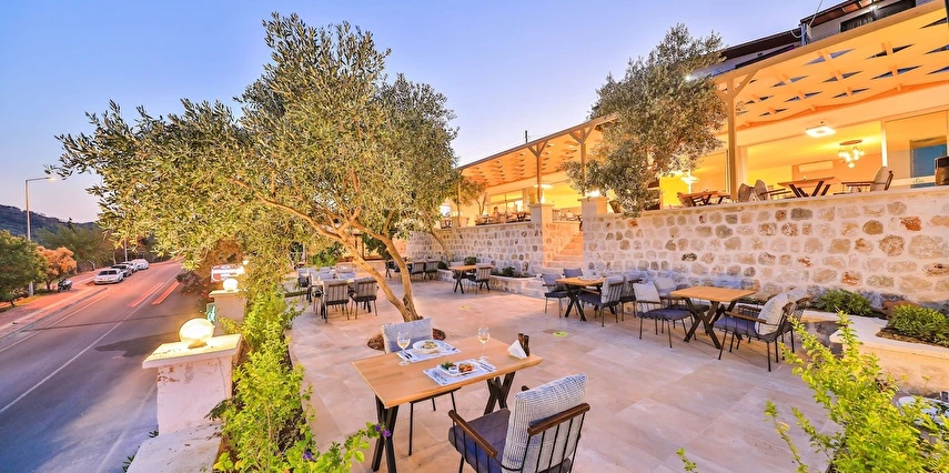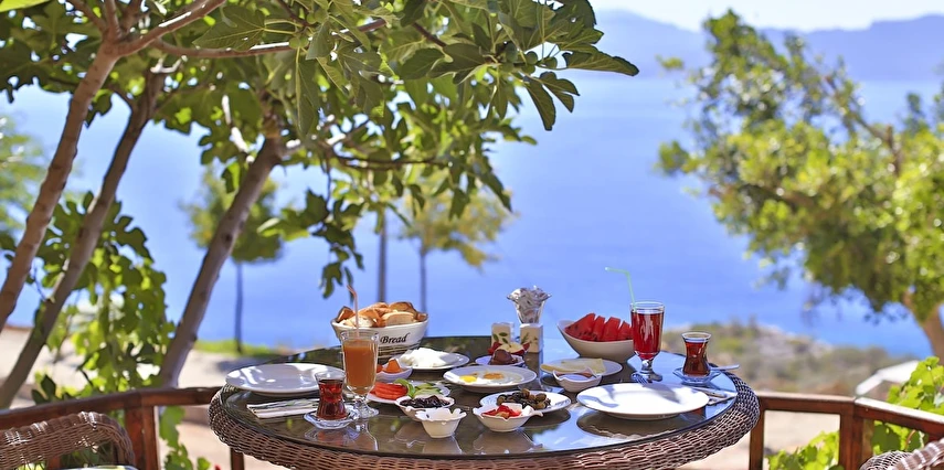 Tesiste her sabah taze ve doğal ürünlerle hazırlanan zengin kahvaltı servisi sunulmaktadır. Gün içerisinde denizin ve güneşin keyfini çıkarabilir, akşam saatlerinde ise otelin restoran ve bar alanında Kaş’ın huzurlu atmosferi eşliğinde keyifli vakit geçirebilirsiniz. Hidayet Koyu başta olmak üzere yarımadanın popüler plajlarına yakın konumu sayesinde misafirler, Kaş’ın en güzel koylarını kolaylıkla keşfedebilir.