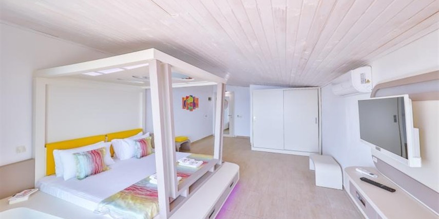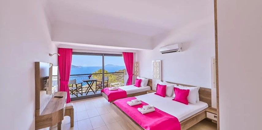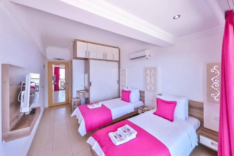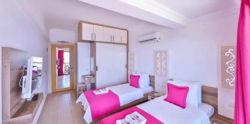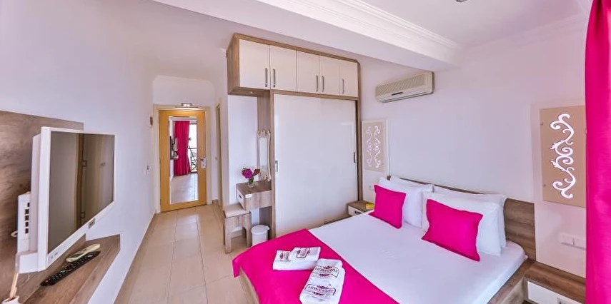 Denize yakın konumda yer alan otelin tüm odaları balkonlu olup, Akdeniz’in masmavi manzarasını ve eşsiz gün batımlarını izleme imkânı sunar. Sade ve konforlu bir anlayışla dekore edilen odalarda, misafirlerin rahatlığı için gerekli tüm temel olanaklar bulunmaktadır. Doğayla uyumlu mimarisi ve sakin ortamı sayesinde şehir kalabalığından uzak, dinlendirici bir tatil vadeder.