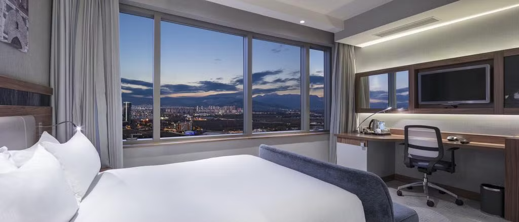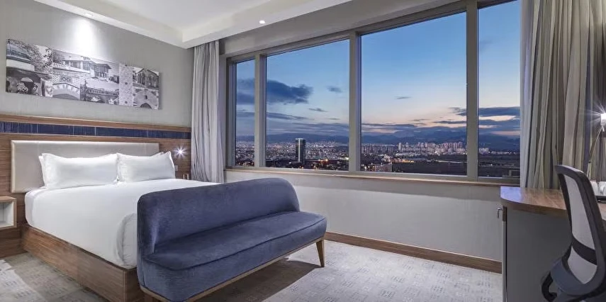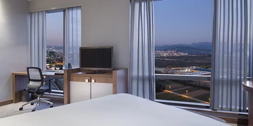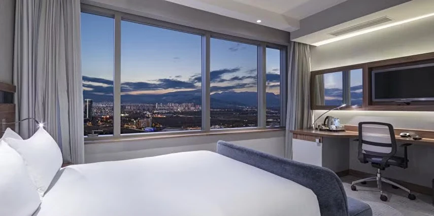 Daha Fazla GösterHampton By Hilton Bursa'ya hoş geldiniz! Otelimiz D575 devlet yolundan çıkınca, alışveriş bölgesine yürüme mesafesinde ve kardeş otelimiz Hilton Bursa Convention Center and Spa'nın bitişiğindedir. Bursa Botanik Parkı ve Hayvanat Bahçesi üç kilometre ve Ulu Camii sekiz kilometre uzaklıktadır. Konaklamaya sıcak kahvaltı dahildir. Ücretsiz WiFi ve fitness merkezimizin keyfini çıkarın.