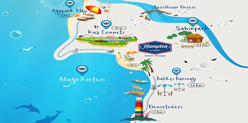 Daha Fazla GösterHampton By Hilton İzmir Aliağa İzmir, Aliağa bölgesinde bulunmaktadır. Otel Adnan Menderes Havaalanı'na 84 km, Aliağa'ya 5 km, İzmir'e 70 km, Foça'ya 44 km uzaklıktadır. Tesis oda kahvaltı konseptinde hizmet vermektedir.
