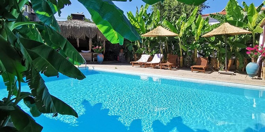 Handa durmak da var, yol almak da. Burada huzur var.. Han Boutique Hotel'de temiz hava ciğerlerinize dolarken siz yeniden doğmuş gibi hissedersiniz.. Dalaman’da merkezi konumu, açık havuzu ve konforlu odalarıyla hizmet veren Han Boutique Hotel Sarıgerme, aile boyu eğlenceli bir tatil alternatifi sunuyor. Tesis, zengin kahvaltısı ve geniş bahçesiyle huzurlu bir tatil geçirmek isteyenleri bekliyor.