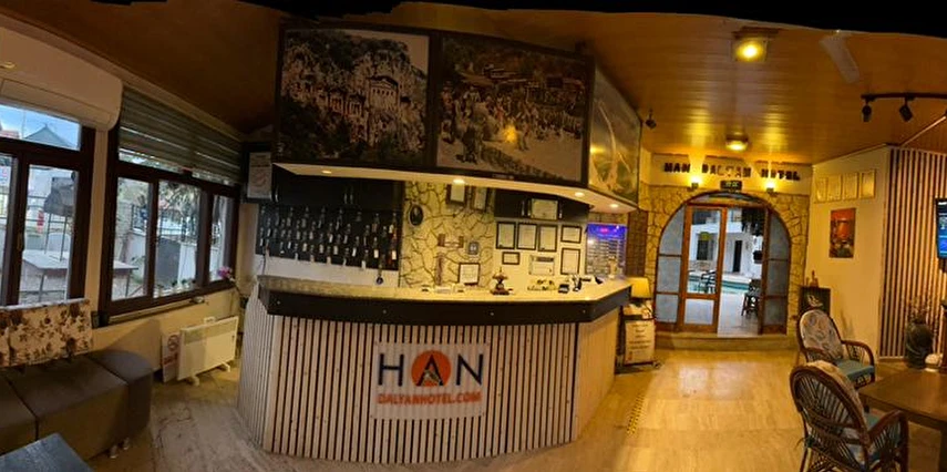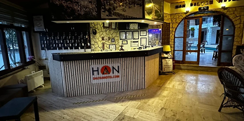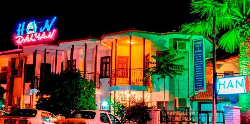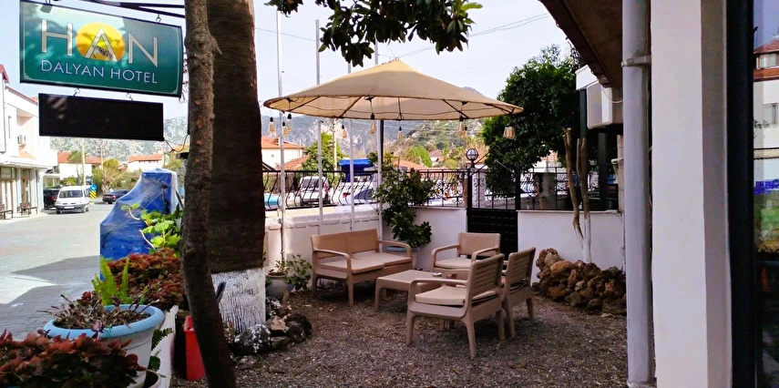 Yeşil ve mavinin tarih ile iç içe olduğu, caretta carettalar diyarı, gizli cennet Dalyan'ın en sakin köşesinde, sıcak atmosferi ve rengarenk dekorasyonu ile Han Dalyan Otel' de keyifli bir tatile hoşgeldiniz! Dalyan şehir merkezinde bulunan otelimiz tekne turlarının yapıldığı kanala 2 dakikalık yürüme mesafesindedir. Otelimiz Dalyan merkezde mükemmel bir alana kurulu, gerçekten dinlenmek için tatil isteyenlerin tercih edebileceği güzel bir atmosfere sahip konaklama yeridir.