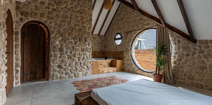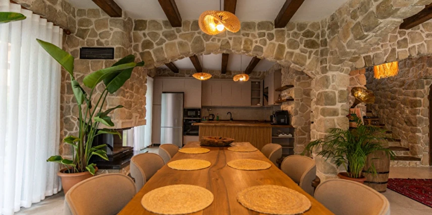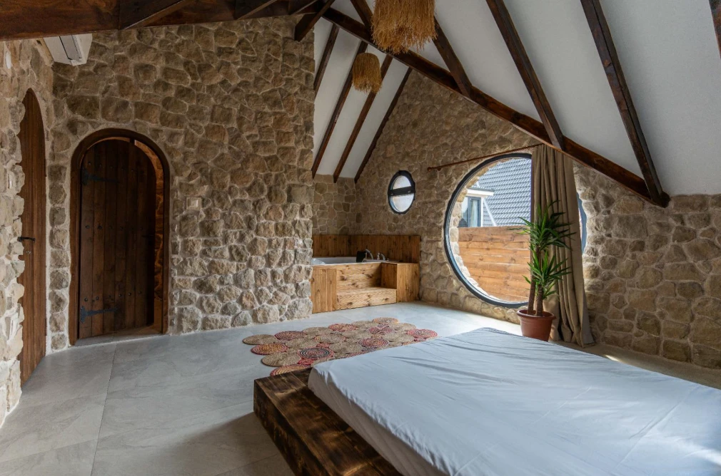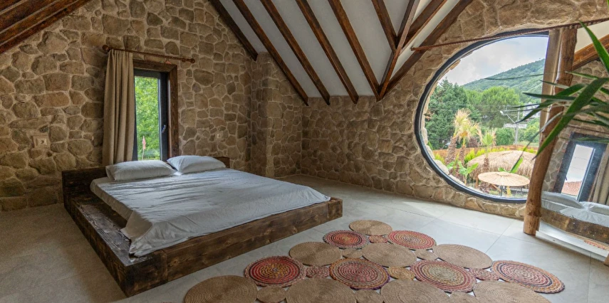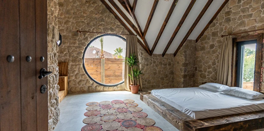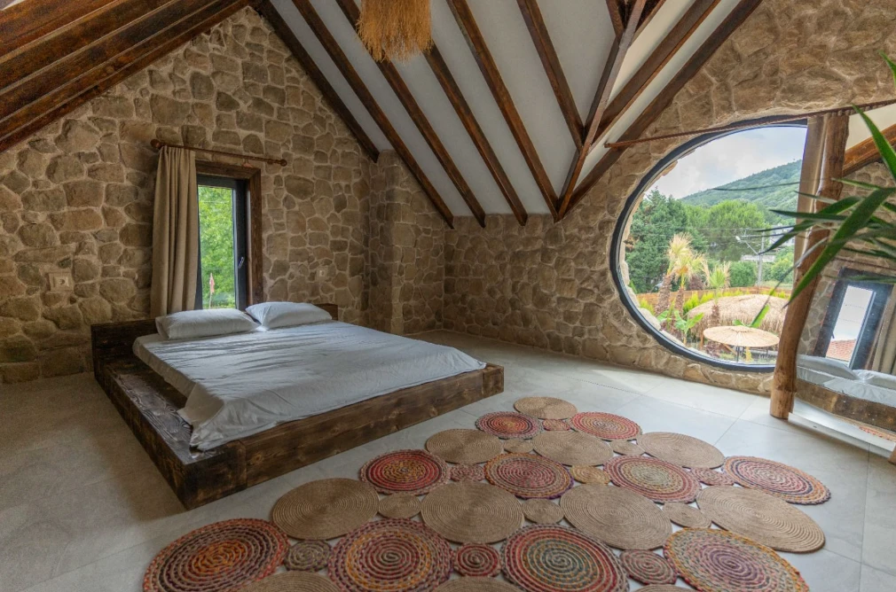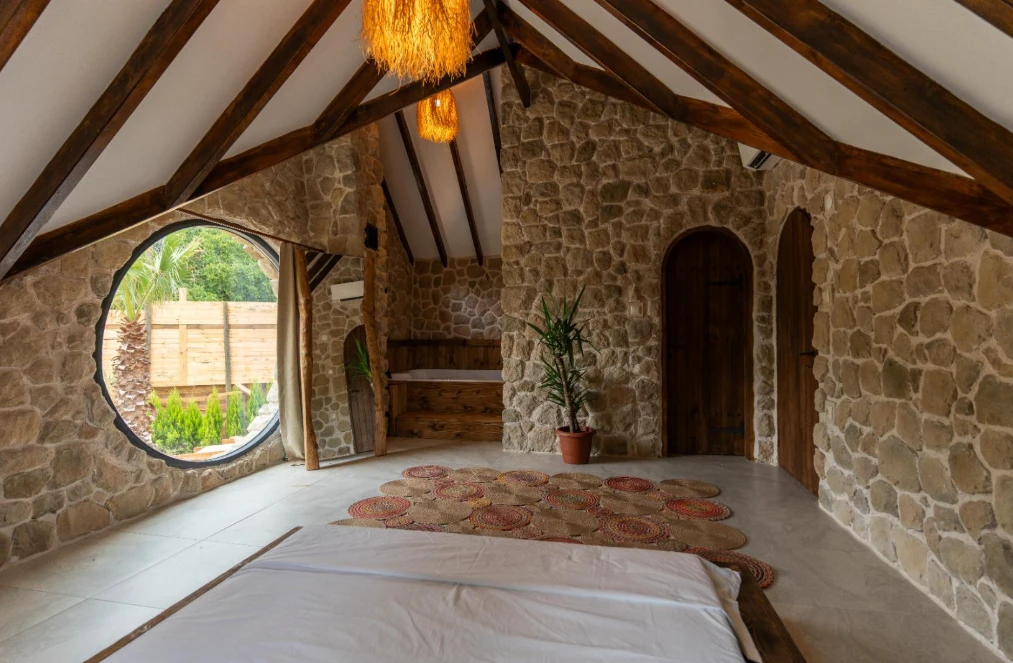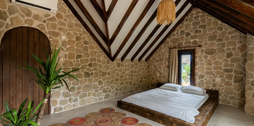 Taş duvarların verdiği güven, modern detayların sunduğu konfor ve doğanın sarıp sarmalayan huzuru burada tek bir anda buluşur. Akşamları bahçede yakılan loş ışıklar, gökyüzünde parlayan yıldızlar ve derin bir nefes… İşte gerçek kaçış tam da budur.