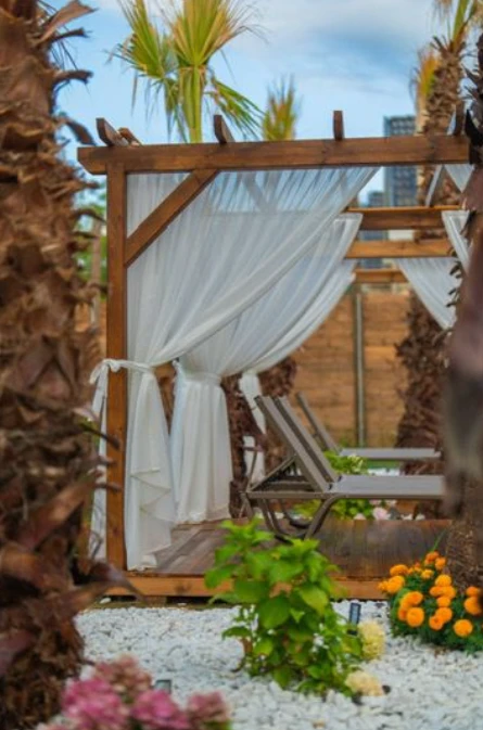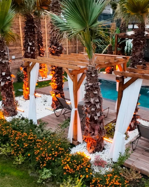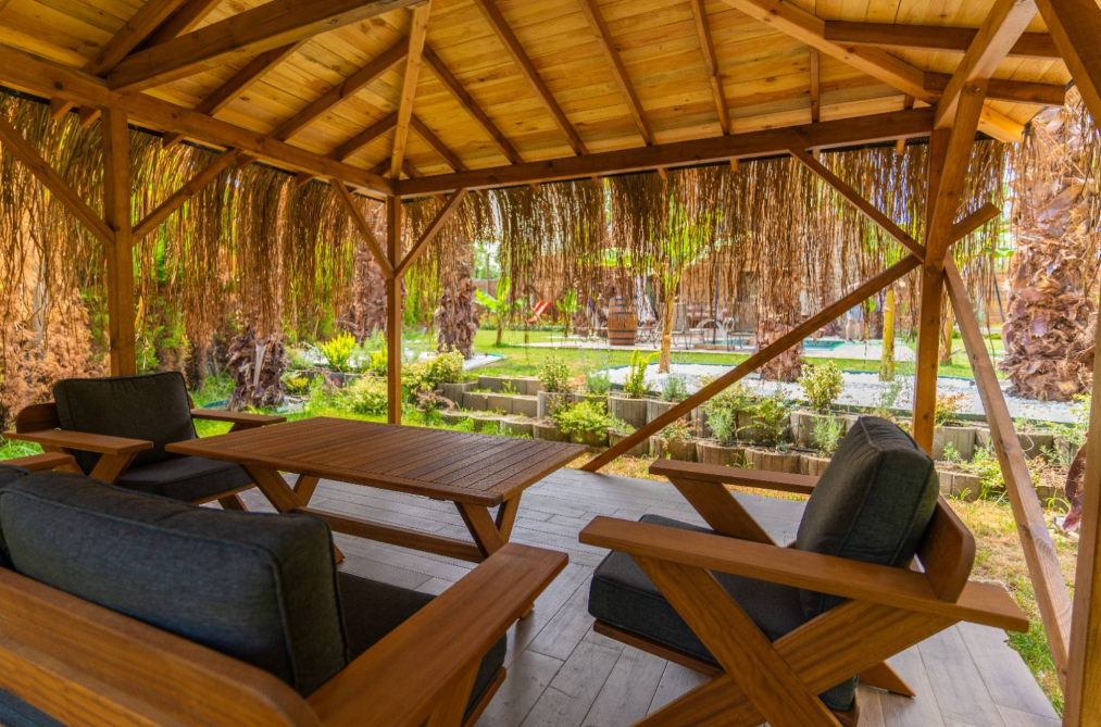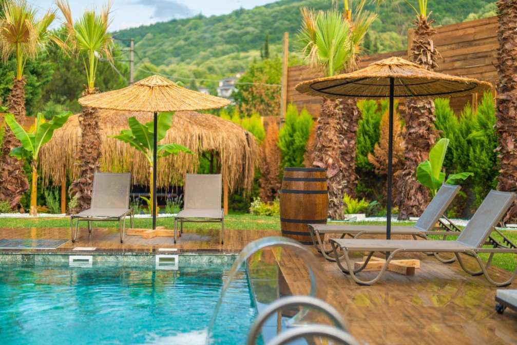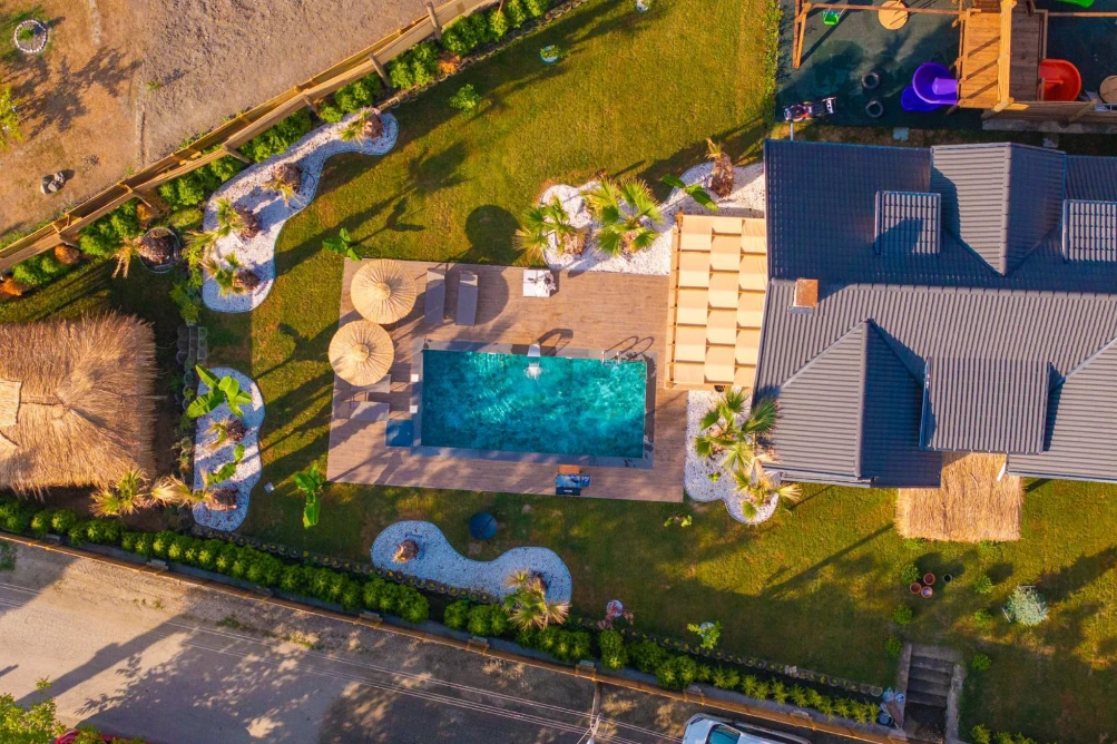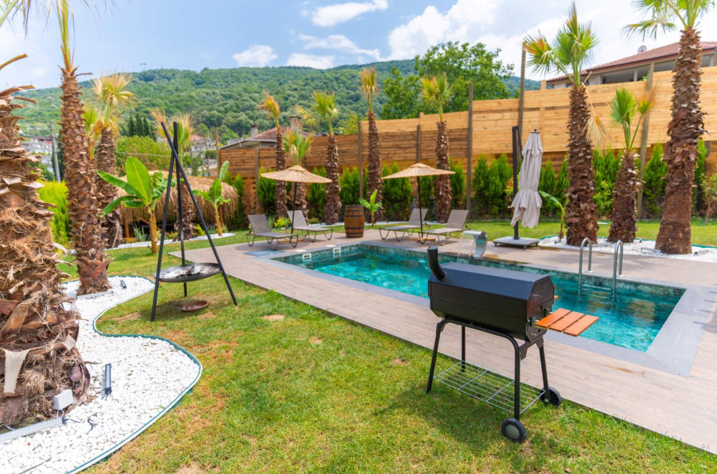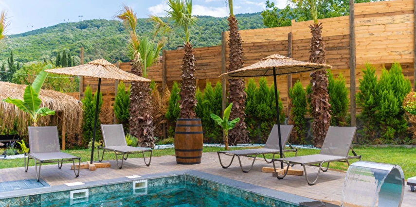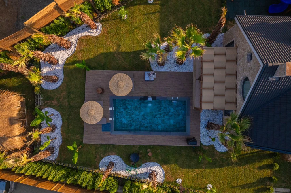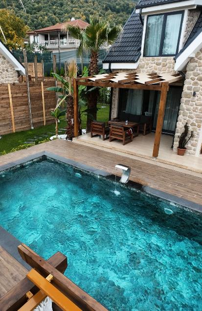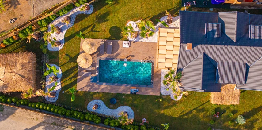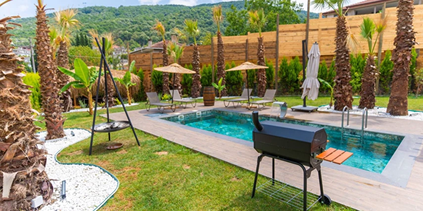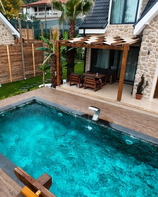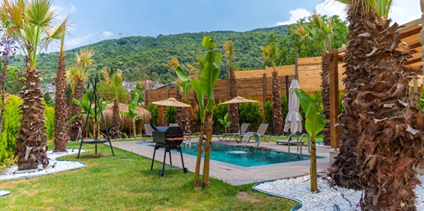 Geniş ve yemyeşil bahçesinde sabah çiyinin serinliğini hissederken, kuş sesleri gününüze eşlik eder. Isıtmalı havuzda ( yaz sezonunda ısıtma aktif değildir )mevsim ne olursa olsun suyun sakinleştirici kollarına bırakır kendinizi; jakuzide ise günün tüm yorgunluğu sessizce çözülür.