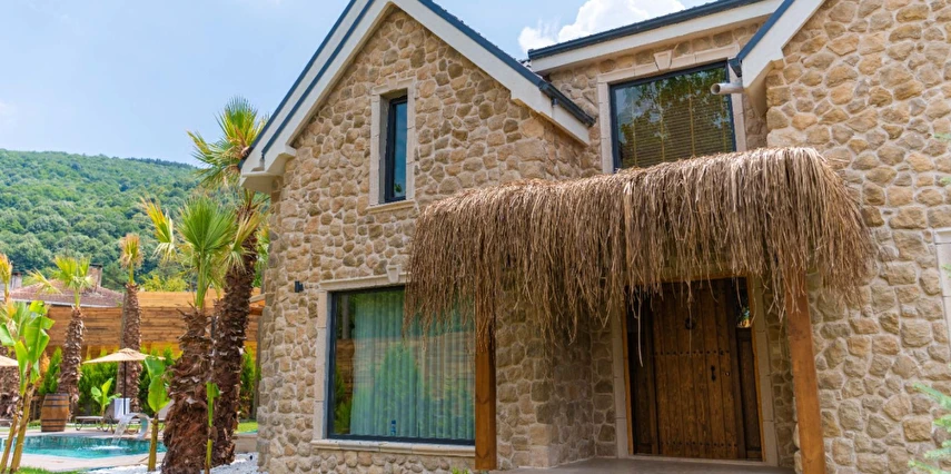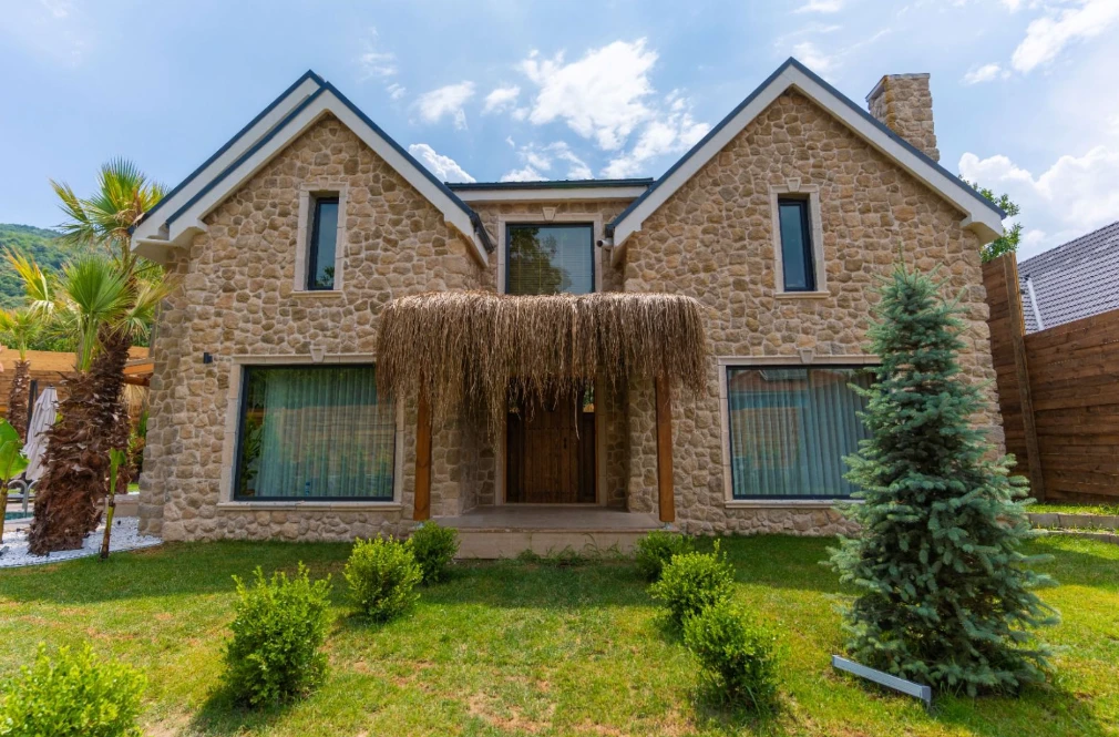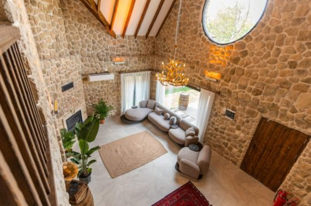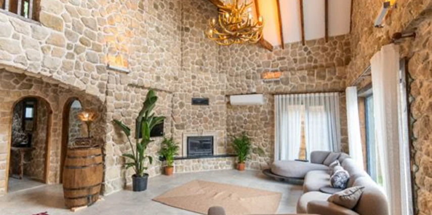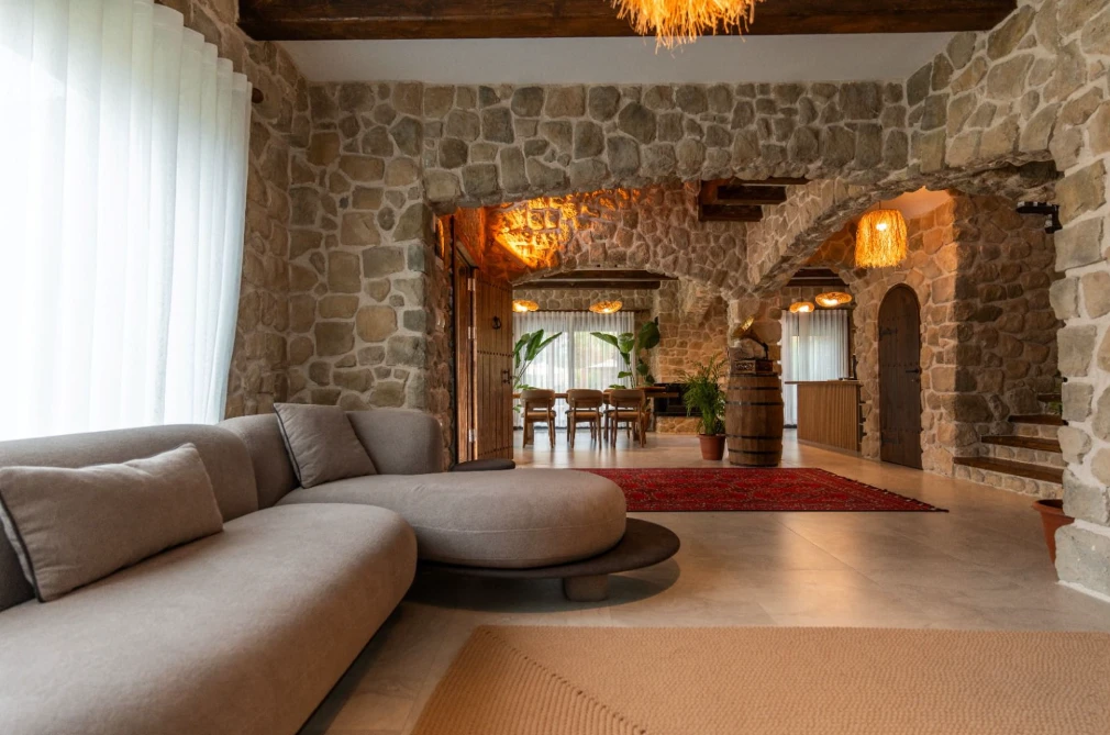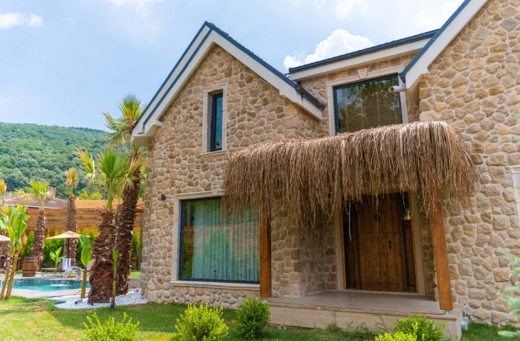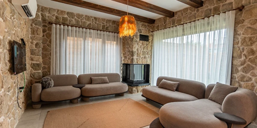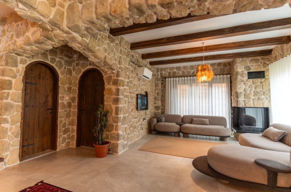 Modern taş ev konseptiyle estetikle huzuru bir araya getiren bu özel yaşam alanı, şehrin gürültüsünü ardınızda bırakmanız için tasarlandı.