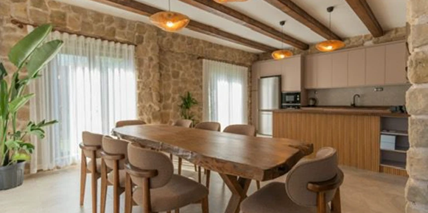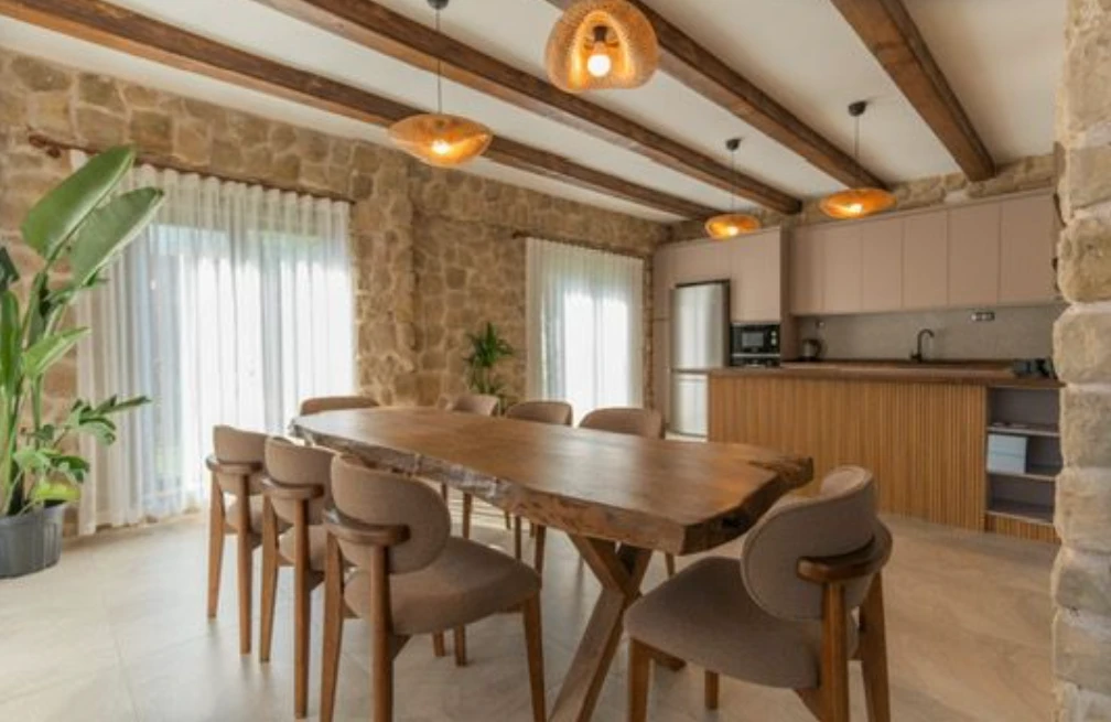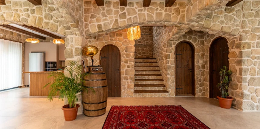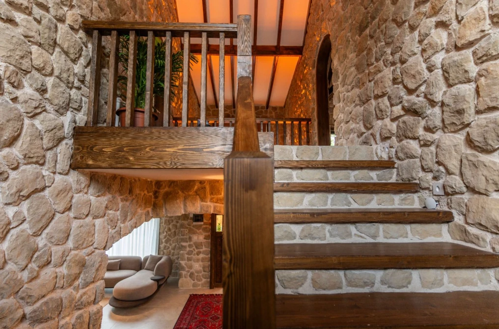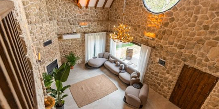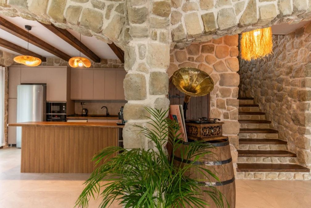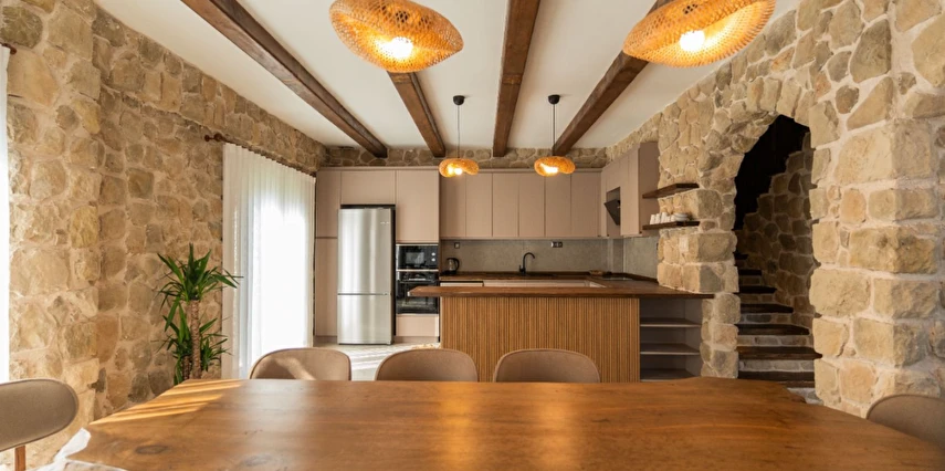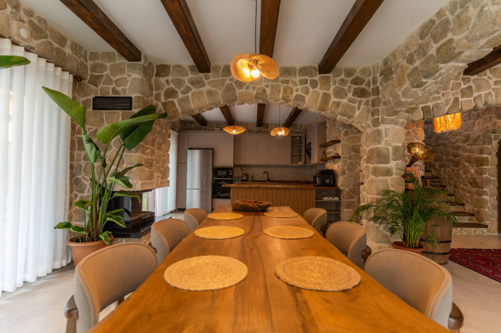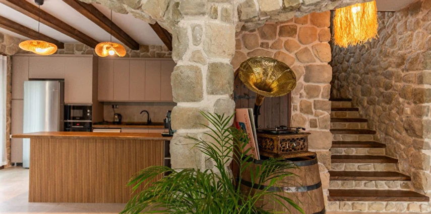 Modern taş ev konseptiyle estetikle huzuru bir araya getiren bu özel yaşam alanı, şehrin gürültüsünü ardınızda bırakmanız için tasarlandı.