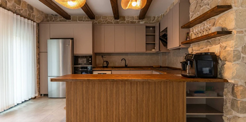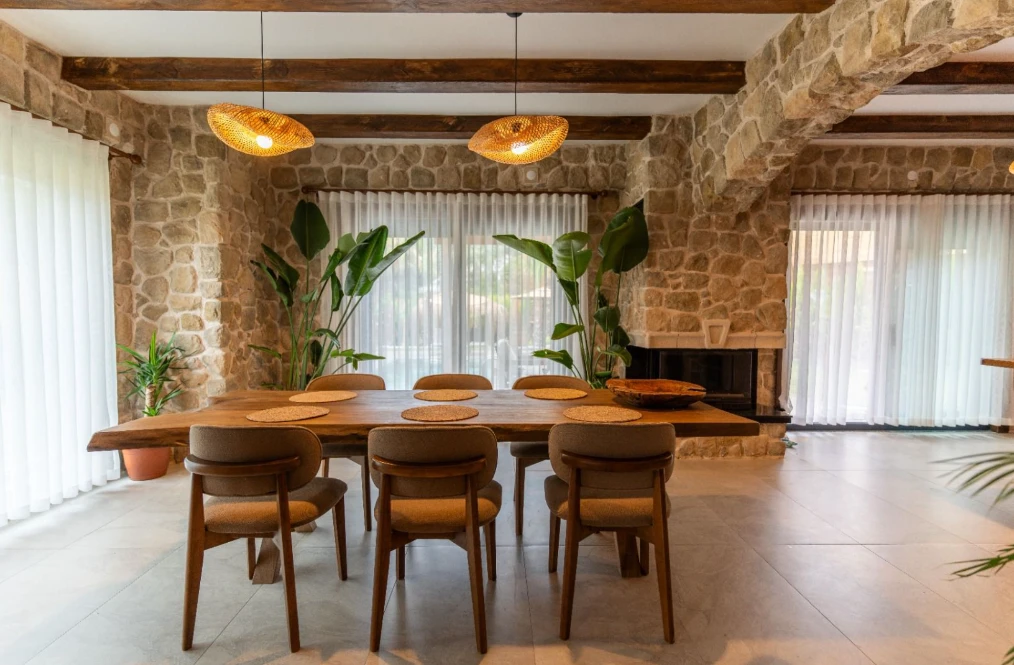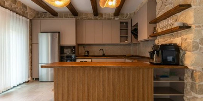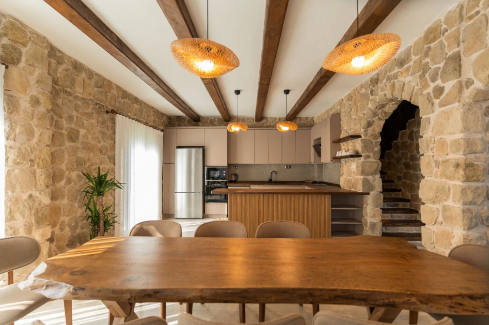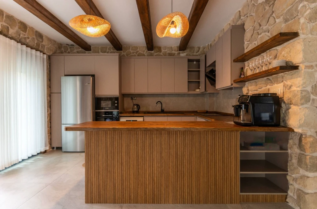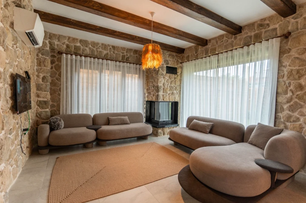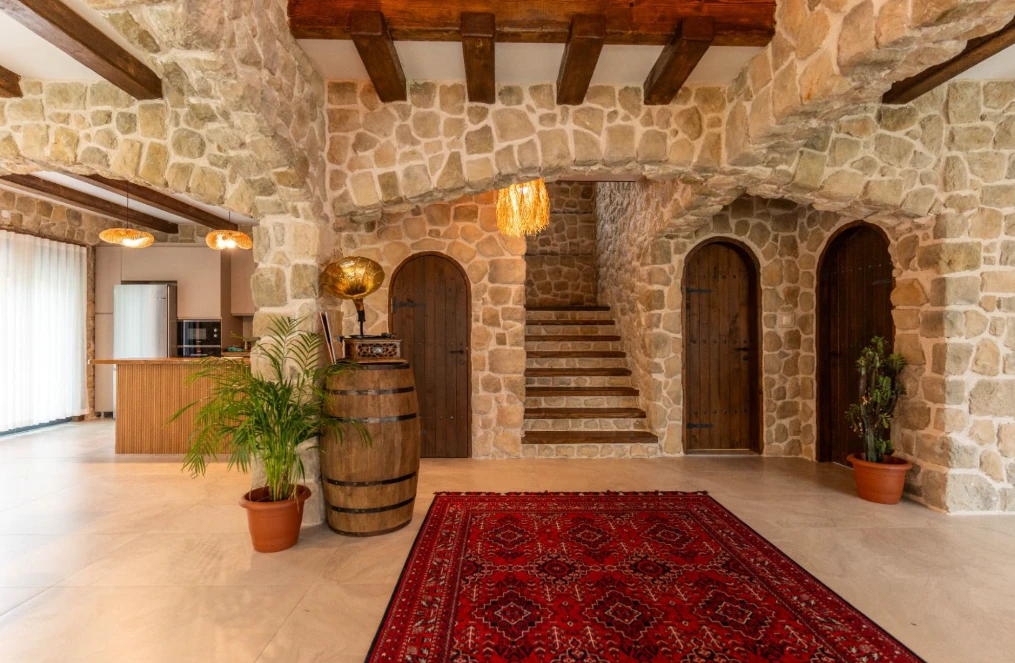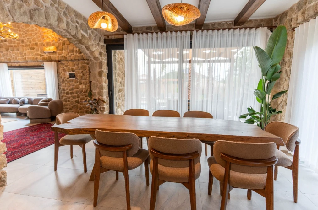 Modern taş ev konseptiyle estetikle huzuru bir araya getiren bu özel yaşam alanı, şehrin gürültüsünü ardınızda bırakmanız için tasarlandı.