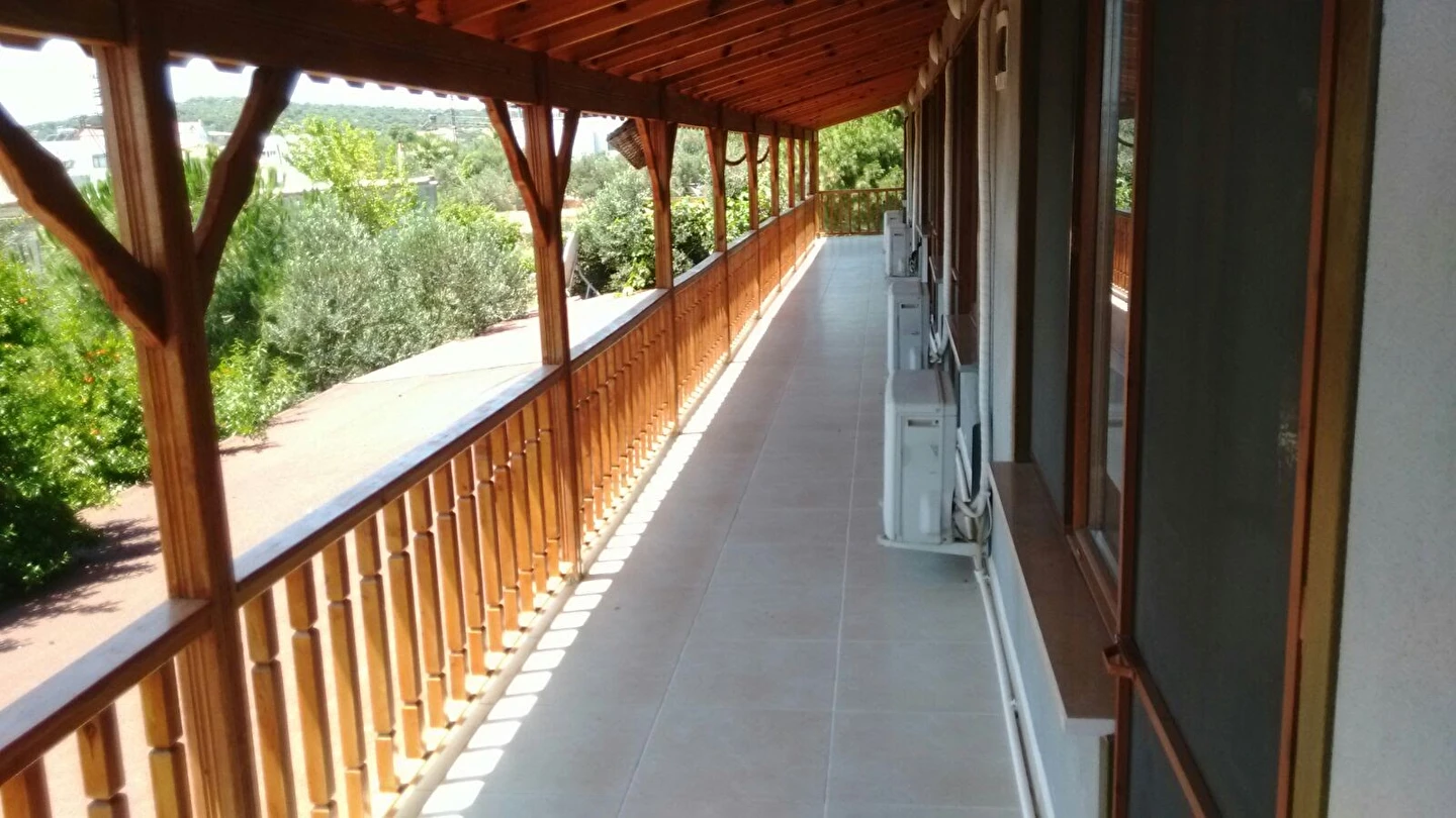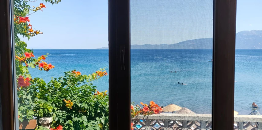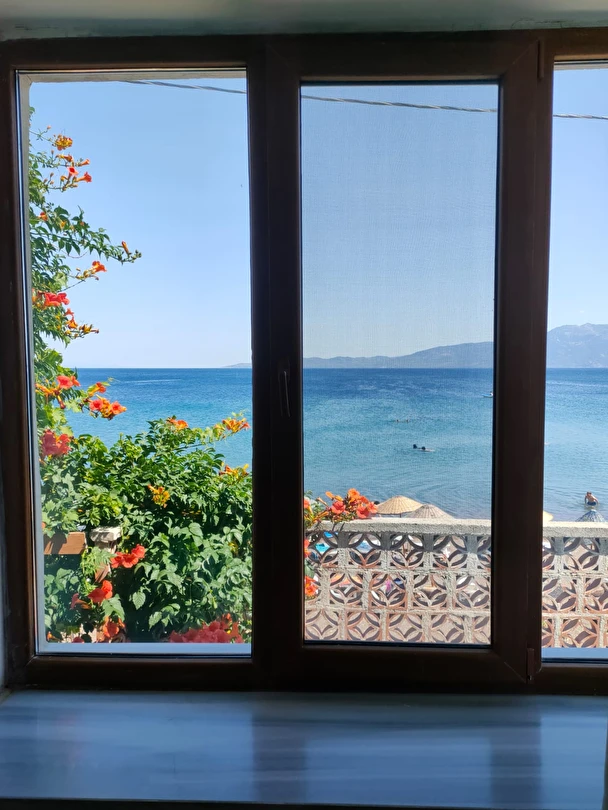Pansiyon, denize nispeten yakın bir konumda bulunur ve açık balkonlu odalar ile deniz manzaralı seçenekler sunabilmektedir. Tesis bünyesinde ayrıca ücretsiz özel otopark, teras alanı ve temel konfor olanakları mevcuttur.