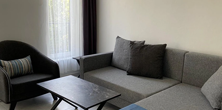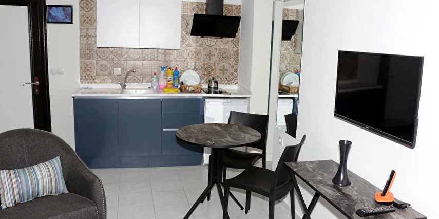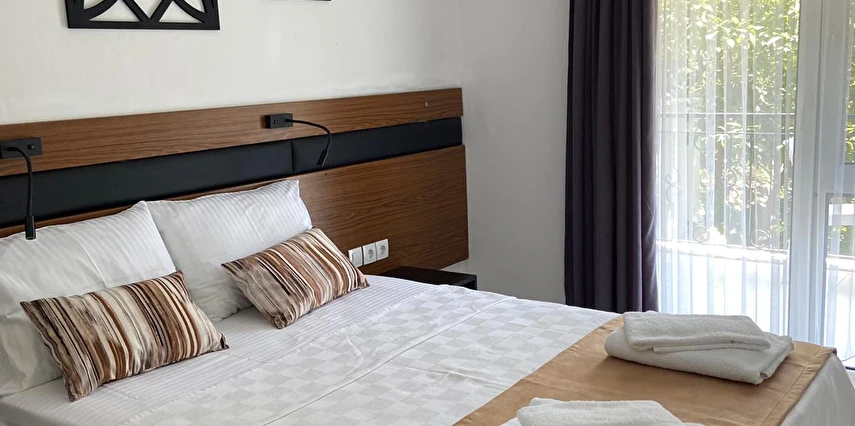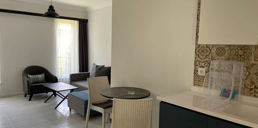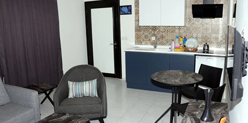 Tesis, mutfaklı konaklama seçeneği ile ayrıcalıklı bir konuma sahiptir. Yaklaşık 35 m² büyüklüğündeki, yeni mobilyalarla donatılmış ve modern tasarıma sahip stüdyo daire tarzındaki odalarda; yatak odası, salon–mutfak alanı ve banyo bulunmaktadır. Odalarda TV, klima, internet, dolap ve elektrikli su ısıtıcısı yer almakta olup misafirlerin tüm ihtiyaçları düşünülmüştür. Tüm odalar balkonludur ve kapılar çelik kapıdır.