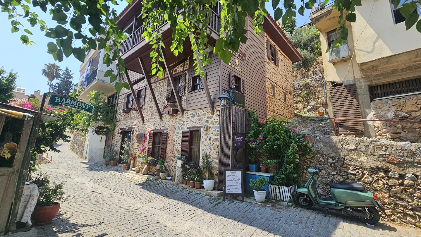 Harmony Butik Otel, Alanya şehir merkezinde, tarihi ve turistik noktalara yürüme mesafesinde konumlanan küçük ve samimi bir tesistir. Otel; Kızıl Kule, Alanya Tersanesi, Alanya Surları ve Soğuk Kapı Plajı’na ortalama 5 dakikalık yürüme mesafesinde yer almaktadır.