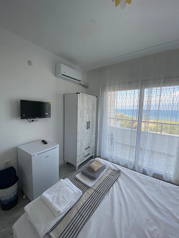 Harmony Blue Pansiyon, Ege’nin temiz havası, deniz manzarası ve doğa atmosferini bir araya getirir. Odalar genellikle çift kişilik yatak ile düzenlenmiş olup sınırlı sayıdaki kapasitesiyle daha samimi ve butik bir tatil deneyimi sunar. Balkon veya ortak alanlardan denize bakabilir, Pelitköy sahilinin tadını çıkarabilirsiniz.