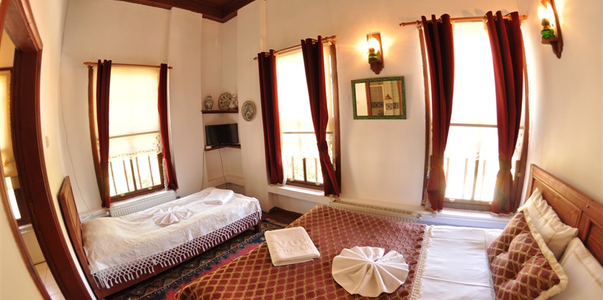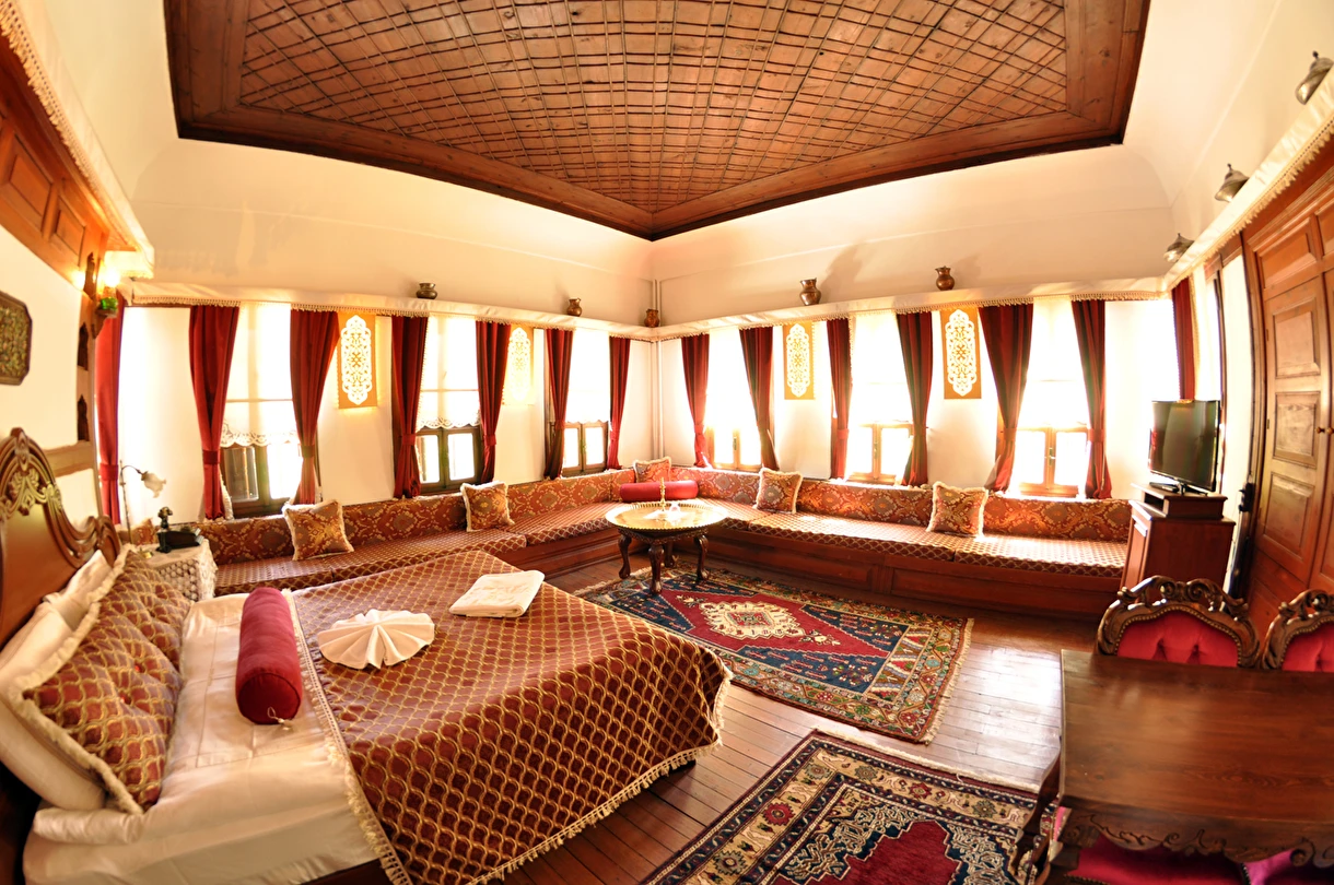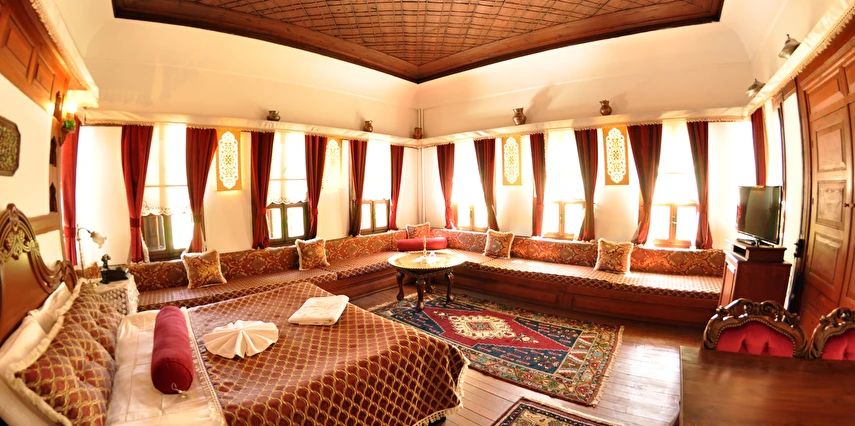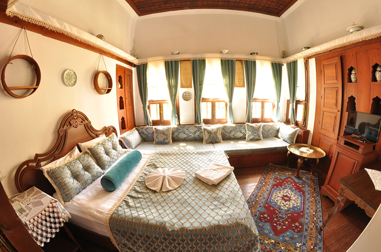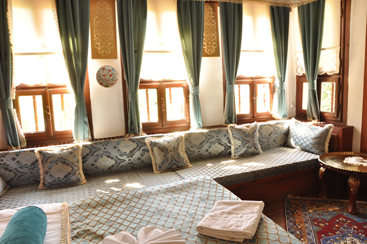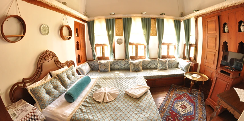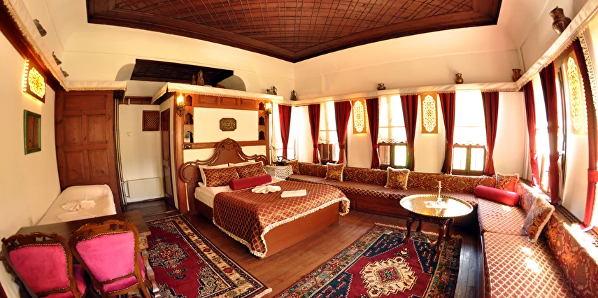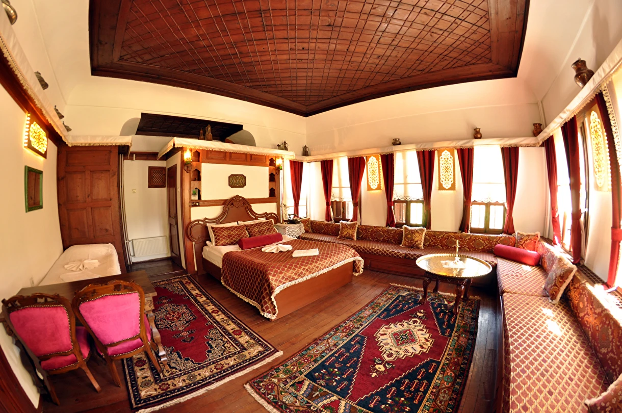 Daha Fazla GösterGeleneksel bir Safranbolu evinde nostaljik bir tatil yapmak isteyen misafirlerini ağırlayan Havuzlu Asmazlar Konağı Safranbolu, ortasında havuz olan salonunda keyifli vakit geçirme imkanı tanıyor. Sabahları güne güzel bir kahvaltıyla başlayan misafirler tesisin bahçesinde açık havanın tadını çıkarıyor. Tesiste ayrıca kablosuz internet ve otopark imkanları da sunuluyor. Merkezi konumu ile misafirlere avantajlı bir konaklama imkanı sunan Havuzlu Asmazlar Konağı, Safranbolu’da yer alıyor. Geleneksel Safranbolu evlerinden birinde hizmet veren tesisin bahçesinde güzel bir gün geçirebilirsin.