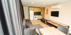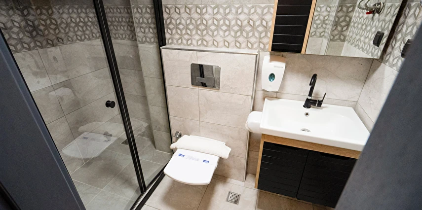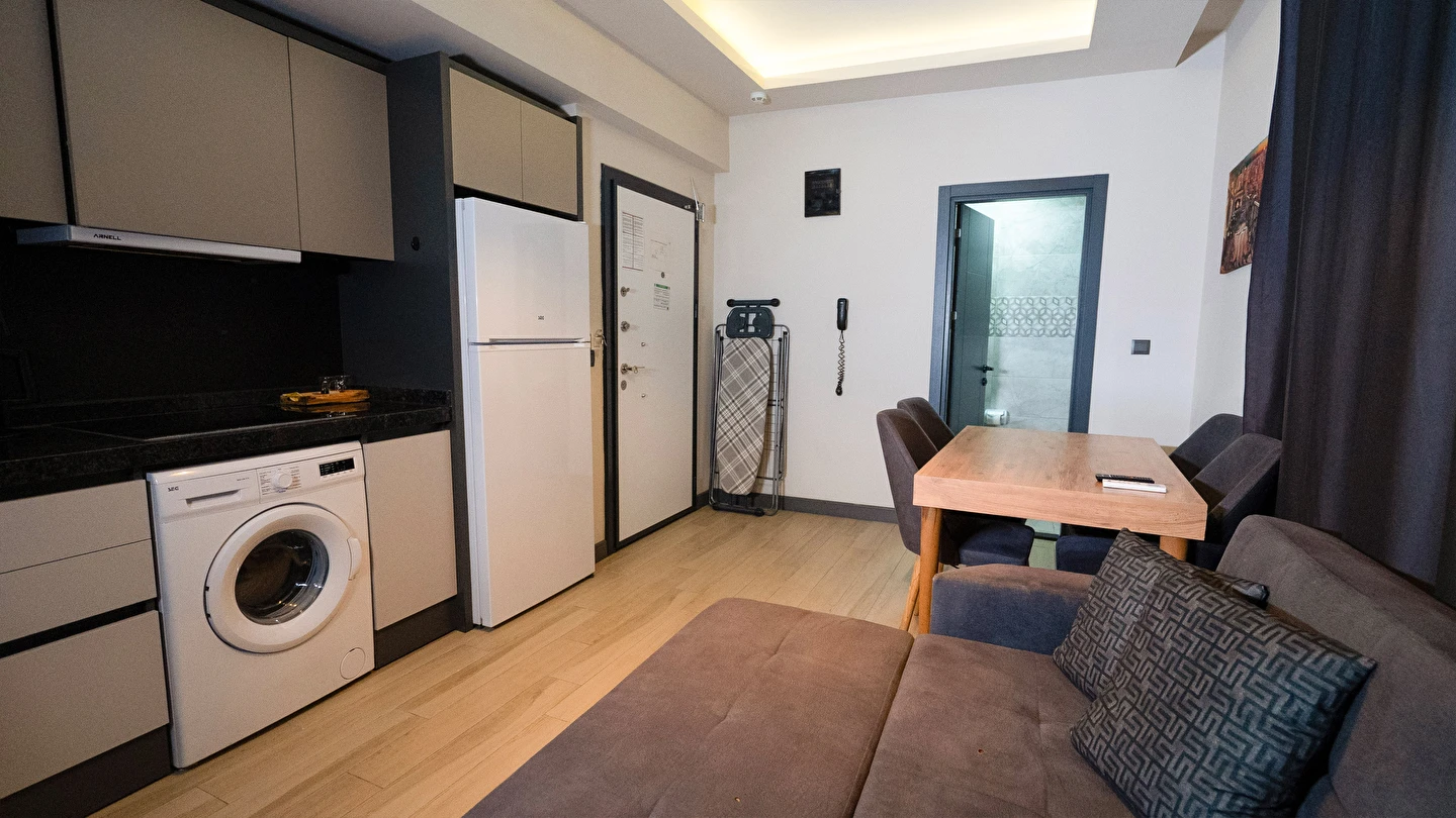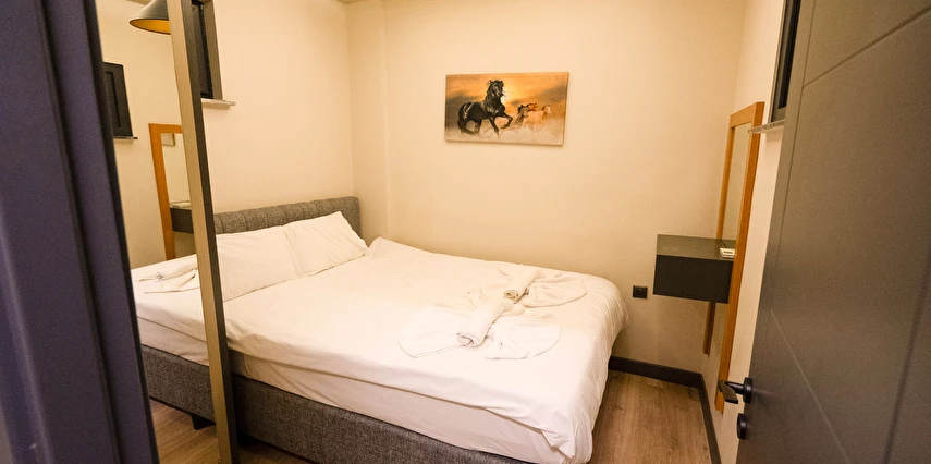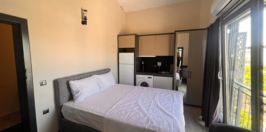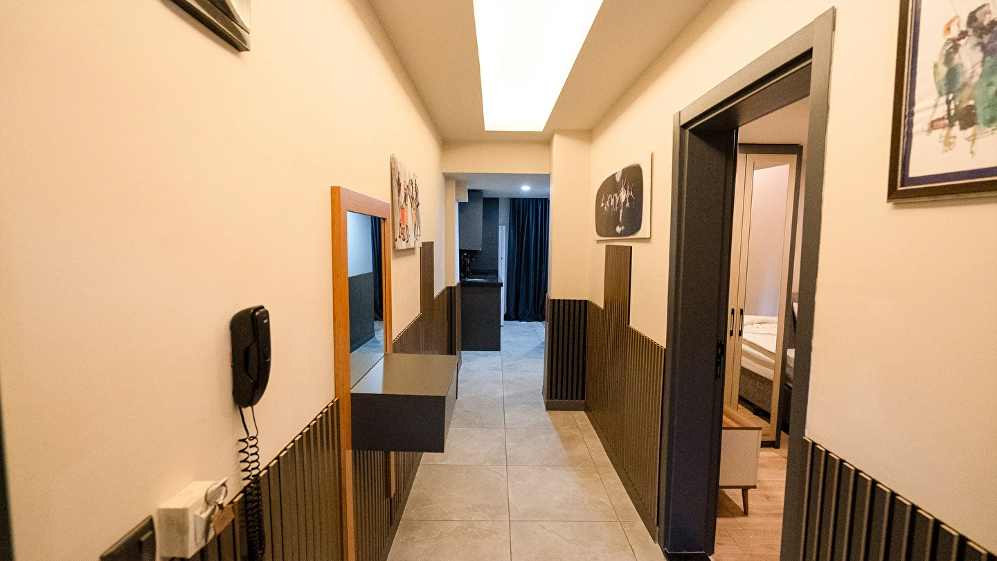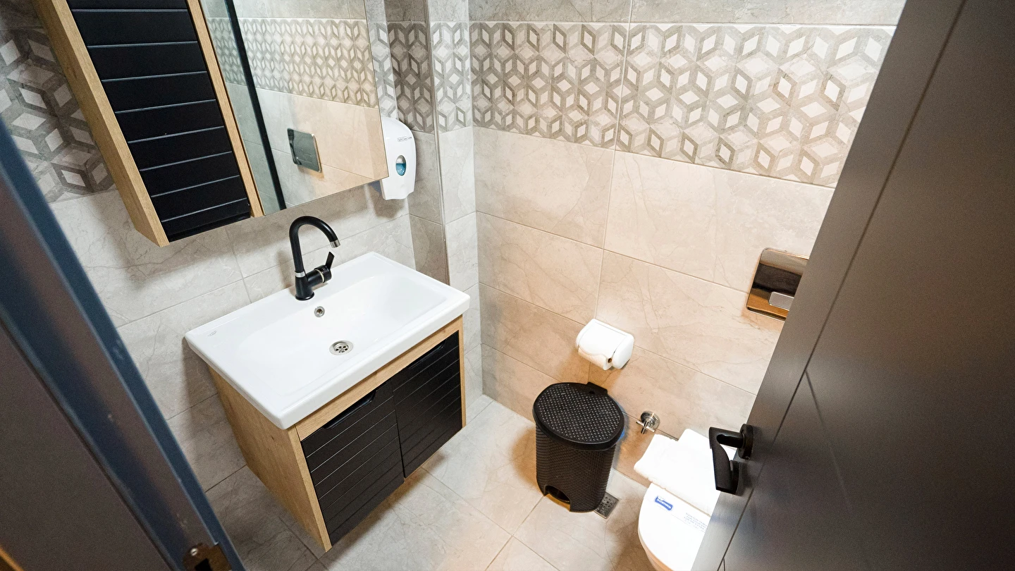 Odalarımız özel olarak Temmuz 2023'te inşa edilmiş ısı ve ses izolasyonuna sahip, asansörlü, 7/24 güvenlik, resepsiyon ve günlük oda temizliği hizmeti veren residence binamız içerisinde bulunmaktadır.