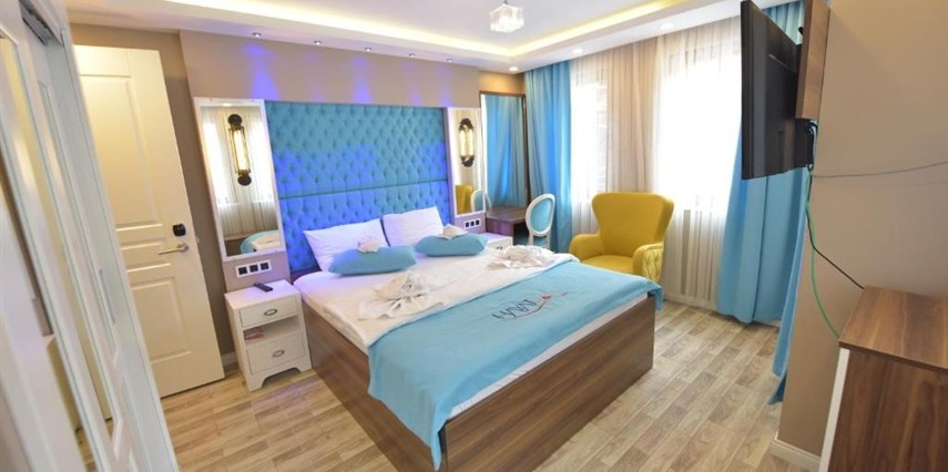 Otelde King Suit, Deluxe Çift Kişilik Oda, Superior Oda, Family Suite, Junior Suit ve Balayı Suiti gibi çeşitli konaklama seçenekleri bulunur. Tüm odalarda düz ekran TV, minibar, özel banyo ve konforlu dinlenme alanları gibi modern konfor unsurları standarttır.
