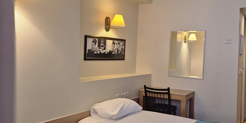 Daha Fazla GösterHaydarpaşa Otel, İstanbul’un Anadolu Yakası’nda yer alan önemli ilçelerinden Kadıköy’de hizmet veriyor. Kadıköy rıhtım mevkiinde misafirlerini ağırlayan tesis, merkezi konumu ile misafirlerine avantaj sağlıyor. Hem iş hem turizm odaklı konaklamalar için tercih edilebilecek olan tesis, İstanbul’da gezilecek yerlere kolayca ulaşılabilecek bir noktada bulunuyor. Kadıköy mekanlarına, çeşitli iş ve alışveriş merkezlerine, İstanbul’un tarihi ve turistik yerlerine yakın konumdaki Haydarpaşa Otel, bulunduğu yerde metro, vapur, otobüs, dolmuş, metrobüs gibi toplu taşıma seçeneklerine kolay ulaşma imkanı sunuyor. Sade dekorasyona sahip odaları ile hizmet veren Haydarpaşa Otel, misafirlerine konforlu bir konaklama deneyimi vadediyor. Tesiste konaklayan misafirler güne leziz açık büfe kahvaltı servisi ile başlayabiliyor. Dileyen misafirler tesis çevresinde yer alan kafe ve restoranlarda da vakit geçirebilir. Tesis Harem Otogarı’na 6 km mesafede yer alıyor.