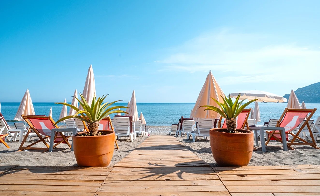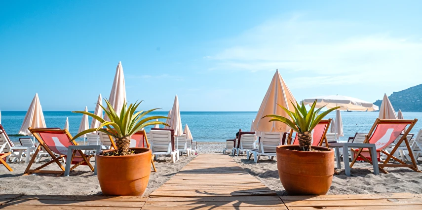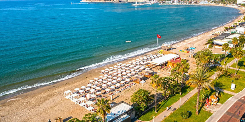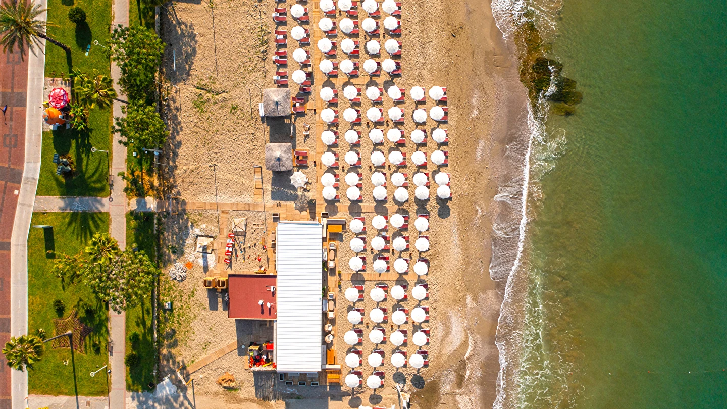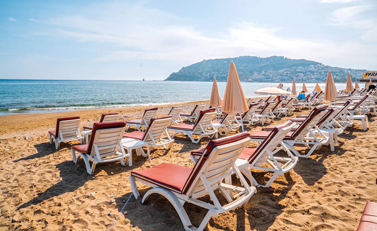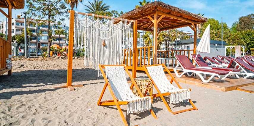 Plajda şezlong şemsiye ücretsizdir.