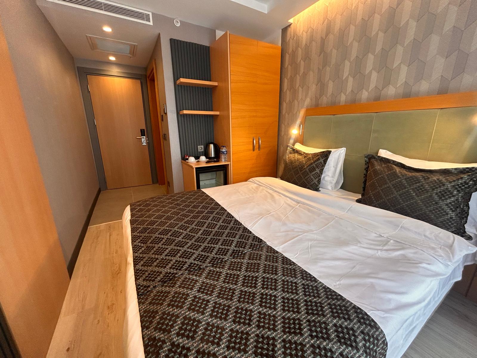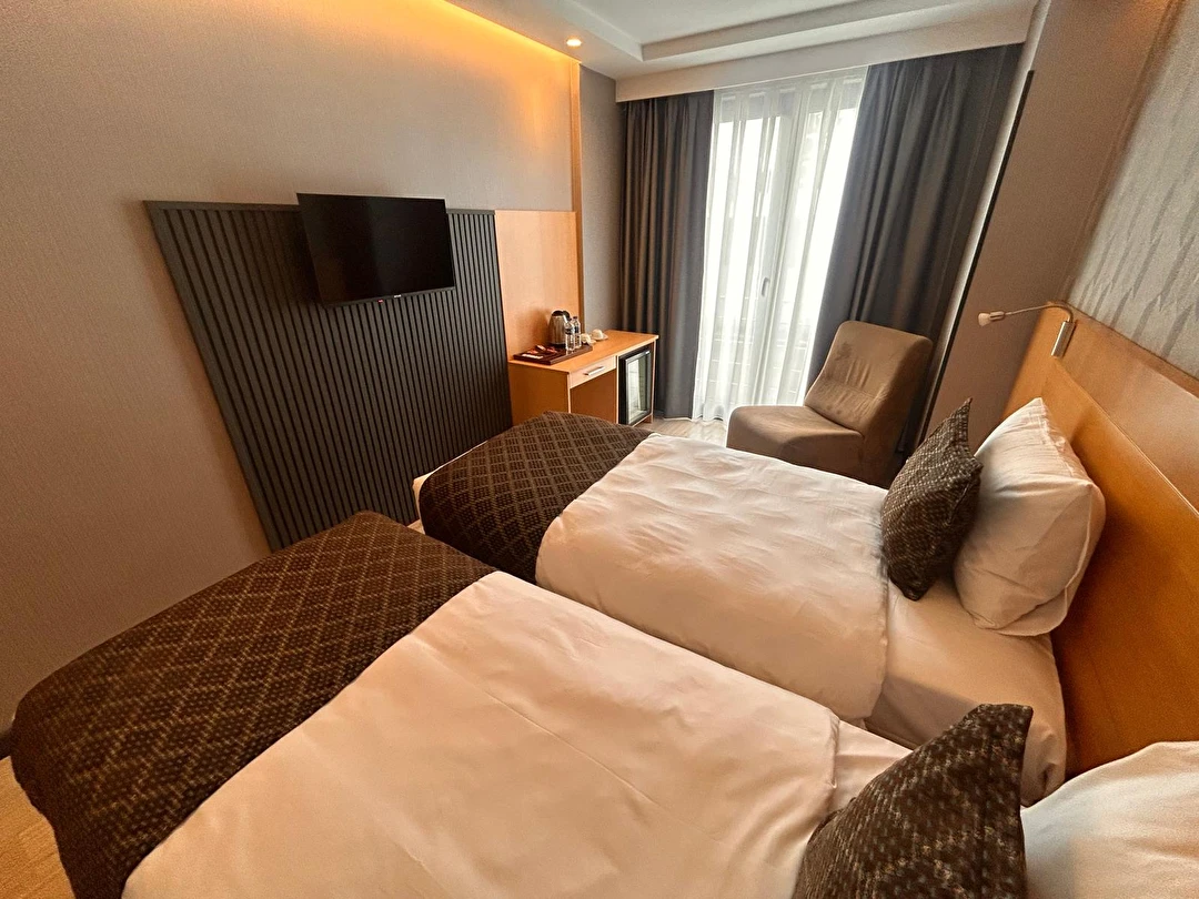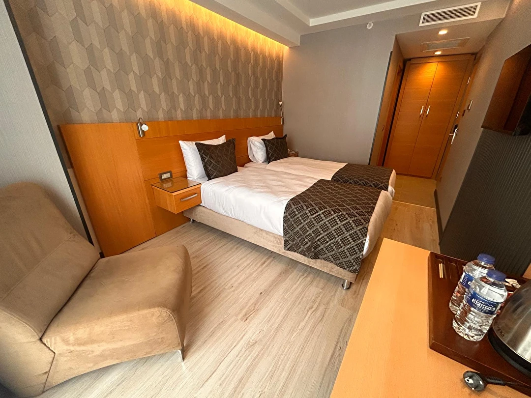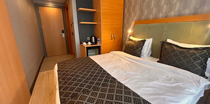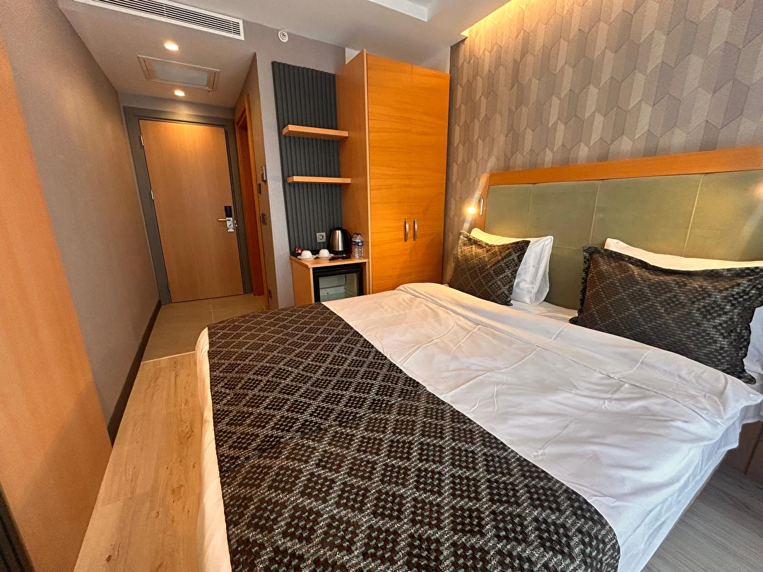 Otelimizde aktif olarak hizmet veren Standart, Superior ve Deluxe oda seçenekleri bulunmaktadır. 13 m² büyüklüğündeki Standart odalarımız kompakt ve kullanışlı yapısıyla konforlu bir konaklama sunarken, 17 m² genişliğindeki Superior ve Deluxe odalarımız daha ferah bir alan ve şık bir atmosfer sunar. Tüm oda tiplerimiz maksimum 2 yetişkin kapasitesine sahiptir.