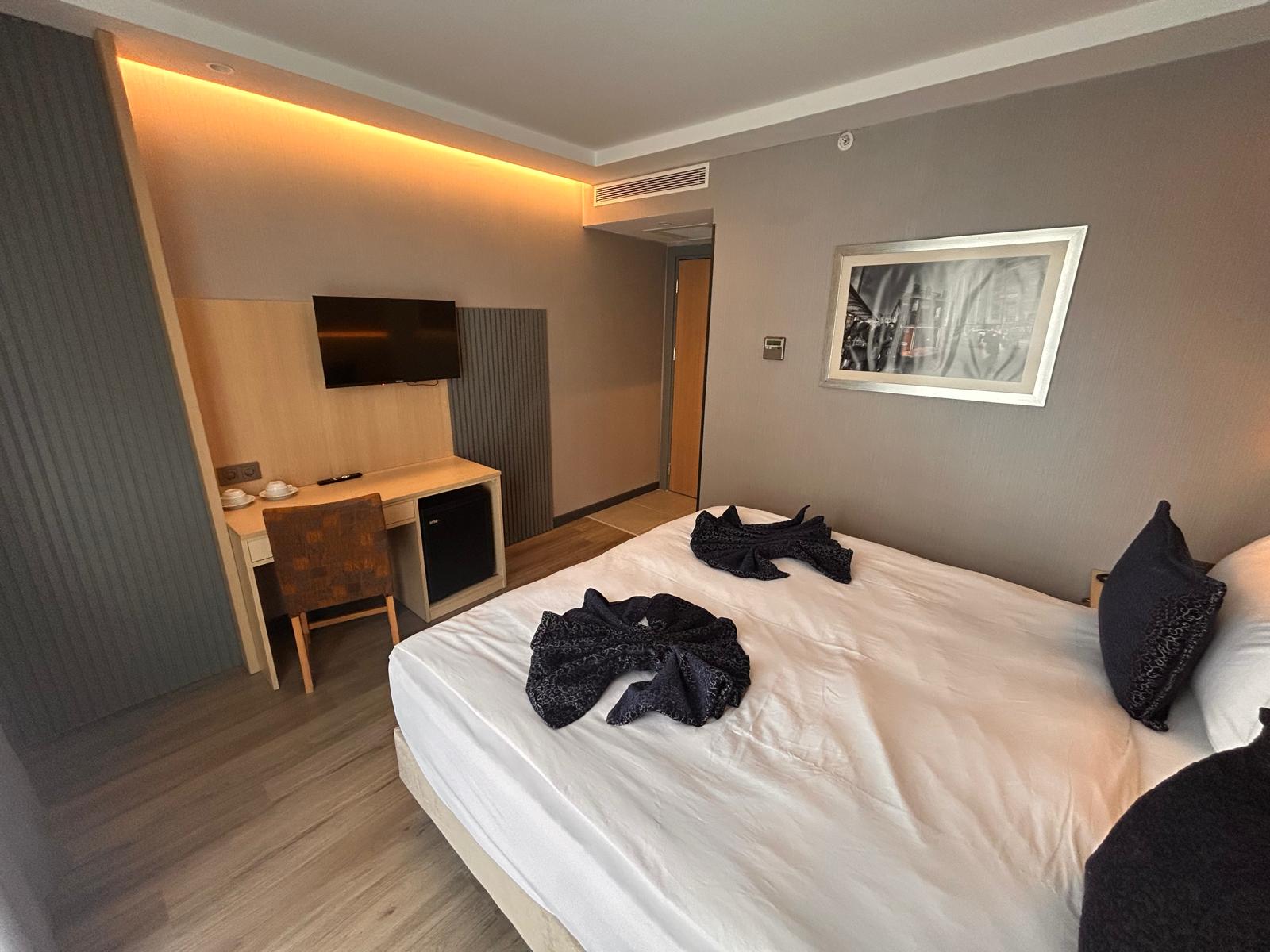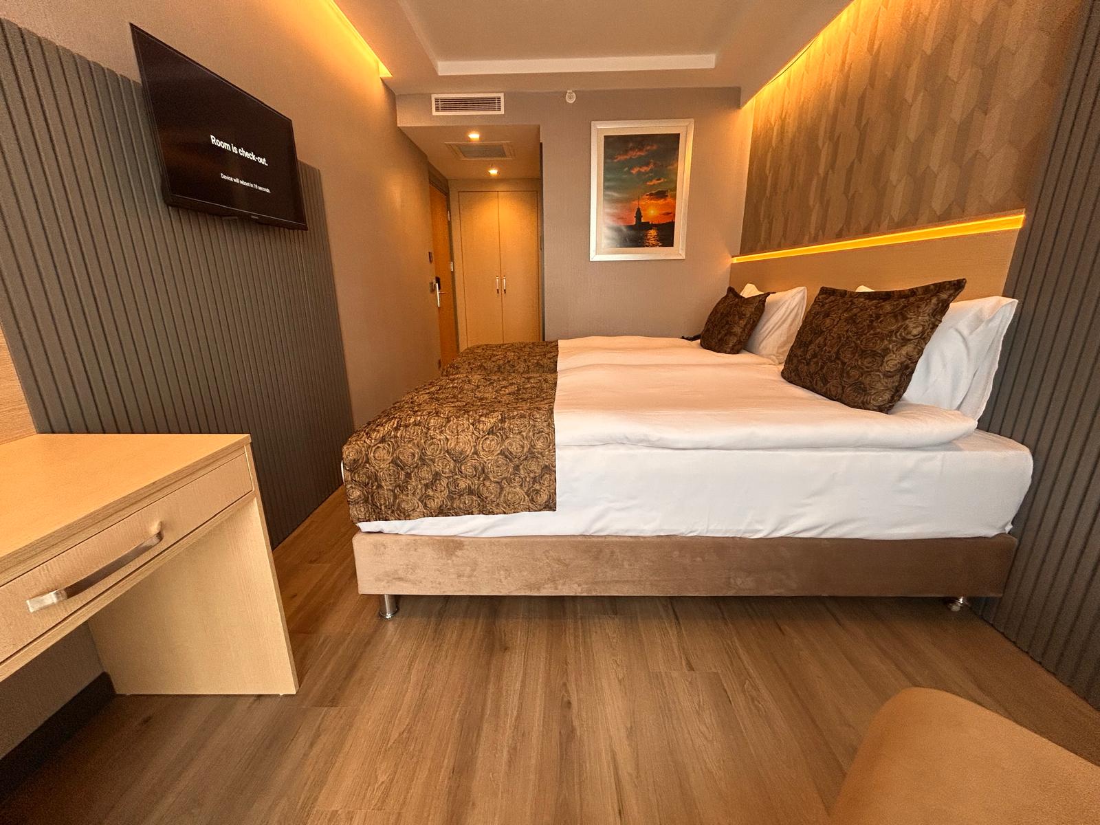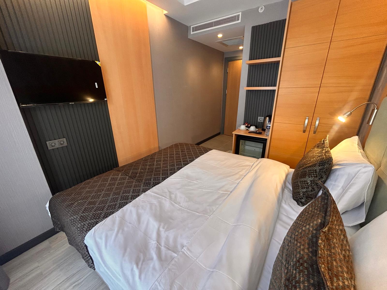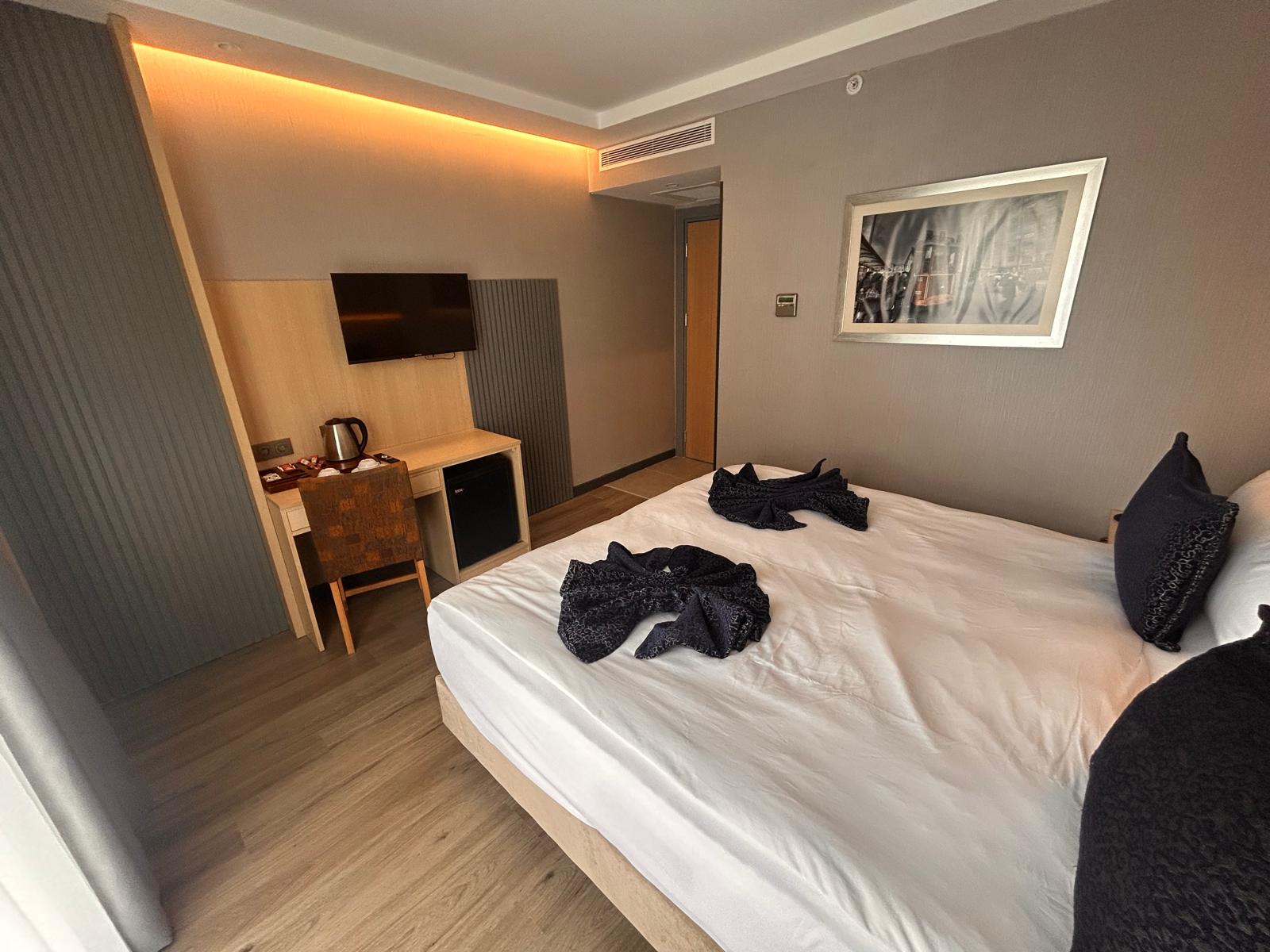 Otelimizde aktif olarak hizmet veren Standart, Superior ve Deluxe oda seçenekleri bulunmaktadır. 13 m² büyüklüğündeki Standart odalarımız kompakt ve kullanışlı yapısıyla konforlu bir konaklama sunarken, 17 m² genişliğindeki Superior ve Deluxe odalarımız daha ferah bir alan ve şık bir atmosfer sunar. Tüm oda tiplerimiz maksimum 2 yetişkin kapasitesine sahiptir.