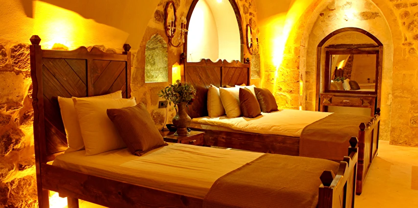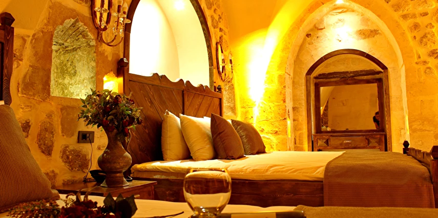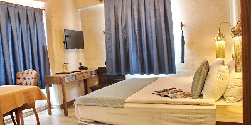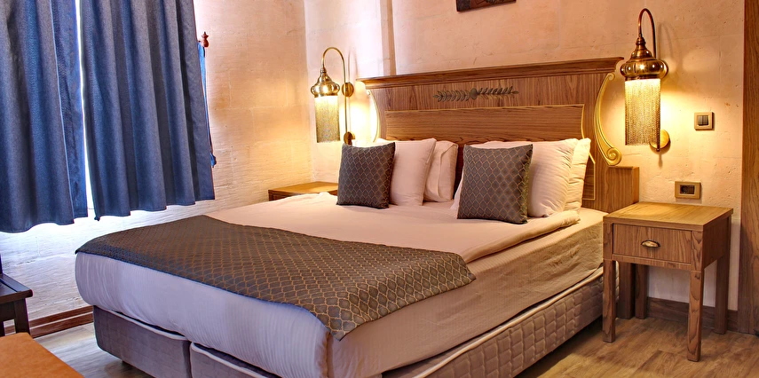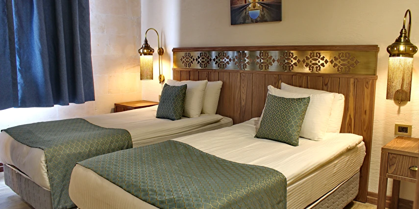 Balkon veya teraslı odalarından Mezopotamya ovası, Mardin Kalesi ve şehir manzarası izlenebilir. Konforlu ve özenle hazırlanan odalarda klima, ücretsiz Wi-Fi ve günlük kat hizmetleri gibi temel ihtiyaçlar misafirlerin rahatlığı düşünülerek sunulmaktadır.