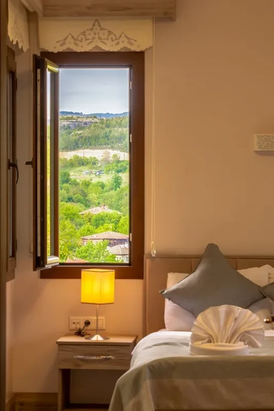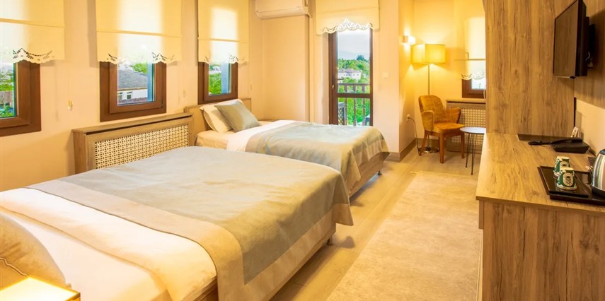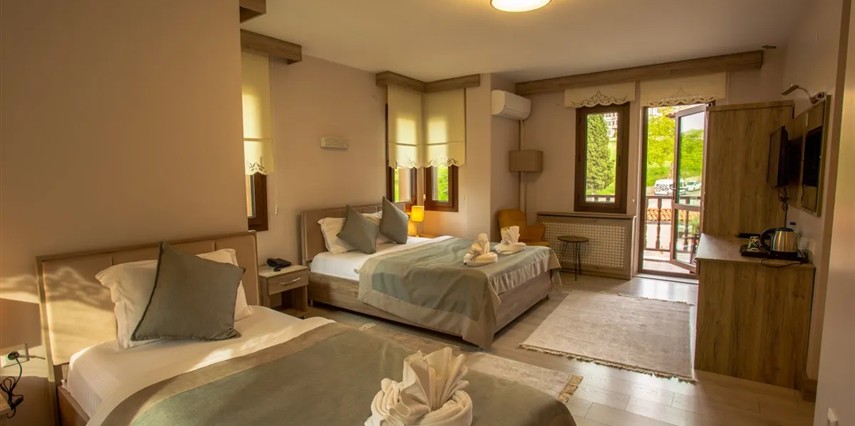 Odaların büyük kısmı bahçe veya şehir manzarasına sahip olup, taş duvarlar, ahşap tavanlar ve klasik dekoratif dokunuşlarla benzersiz bir atmosfer sunar. Günlük oda temizliği ve özenle sunulan kahvaltı ile konuklar, hem dinlenme hem de Karadeniz’in doğal ve tarihi güzelliklerini keşfetme fırsatına sahip olur.