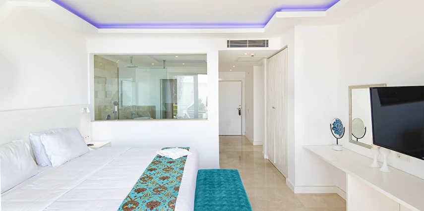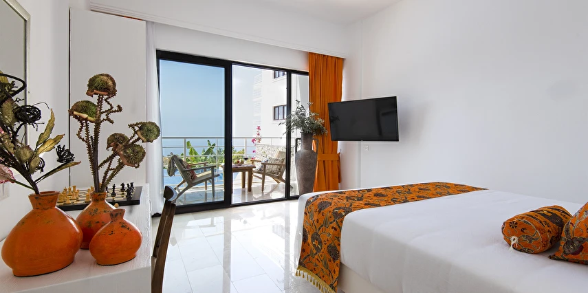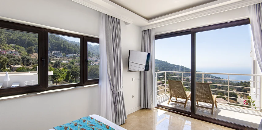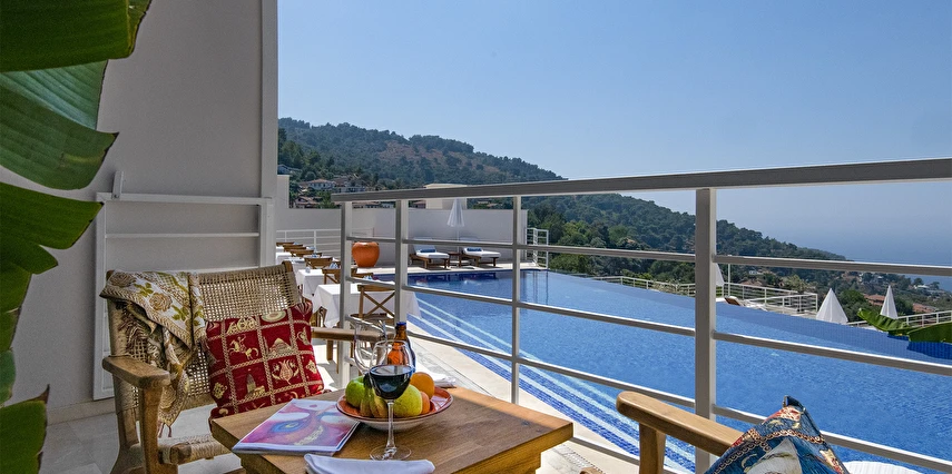 Tüm Balkonlarımızın geniş olması, begonville çiçekleriyle sarılı olması ve hepsinin direkt deniz manzaralı olmasıyla misafirlerimize özel alanlarında üst düzey mutluluk hissi yaratmaktadır.