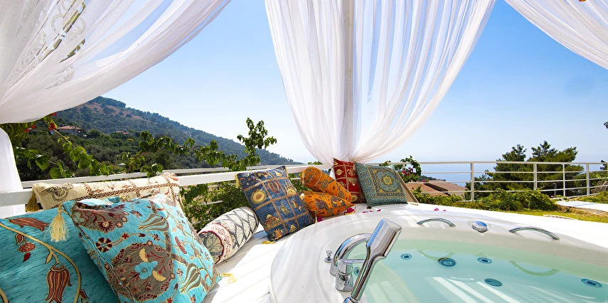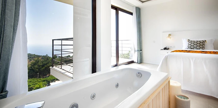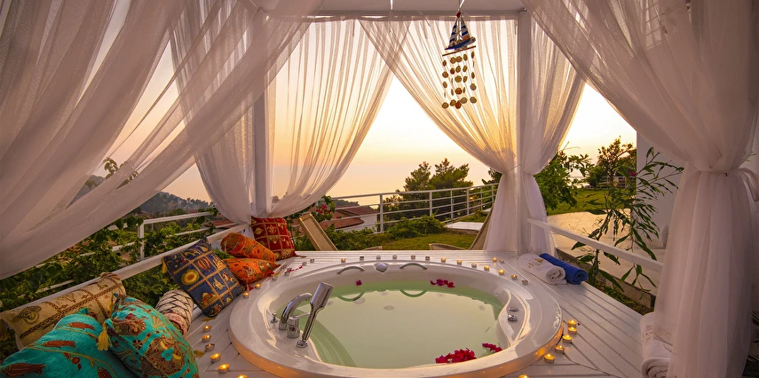 Fethiyede yüksek dağların eteğinde konumlandırılmış, yeşil orman içinde gizlenmiş, ön cephesi tamamen Akdenizin Mavi sularını ve tam karşı cepheden gün batımı eşliğinde enfes kokteyllerimiz ile izlemenin keyfine doyamayacaksınız.