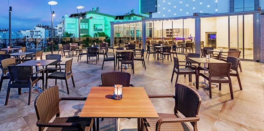 Holiday Inn Antalya Lara, doğasıyla büyüleyen ve her yıl yerli yabancı pek çok turisti ağırlayan Antalya’da konumlanıyor. Modern dekore edilmiş, şık ve konforlu odalarında misafirlerin ihtiyaç duyduğu pek çok olanağın sunulduğu tesis, Eski Lara bölgesindeki Hadrian Kapısı’na 9 km mesafede konumlanıyor. Plaja yalnızca birkaç dakikalık yürüme mesafesinde olan tesisin aynı zamanda plaja ücretsiz servisi bulunmakta olup , deniz manzaralı odaları, açık yüzme havuzu, güneşlenme terası ve sunduğu diğer olanaklarla misafirlerine eğlence dolu bir tatil vadediyor. Odaların bazılarında balkon ve teras mevcut. Hem iş hem tatil amaçlı konaklamalara hitap eden tesis, açık lobi konsepti ile hizmet veriyor. Sabahları nefis açık büfe kahvaltı ile güne başlayabilirsiniz. Tesiste gün boyu özenli lezzetler eşliğinde dinlenebilir, Akdeniz lezzetlerinin sunulduğu restoranda damak hafızanıza kazınacak menülerle buluşabilirsiniz. Tesisin havalimanına mesafesi 9 kmdir