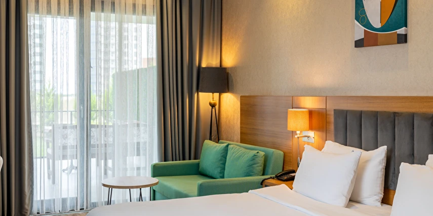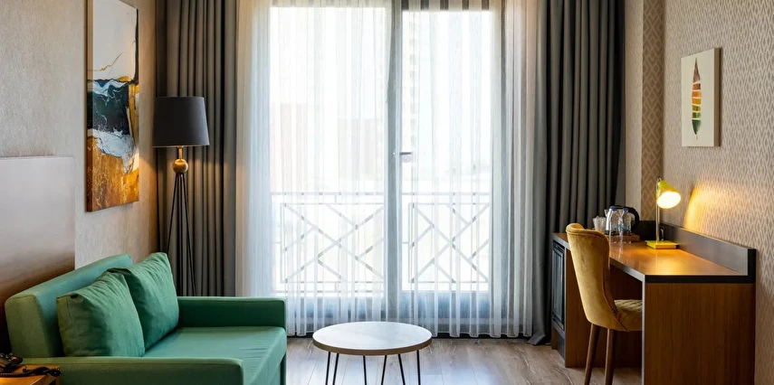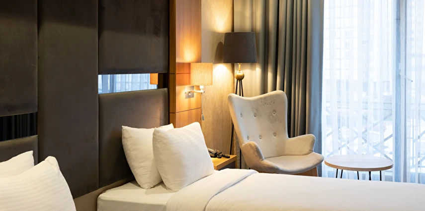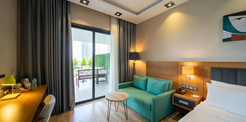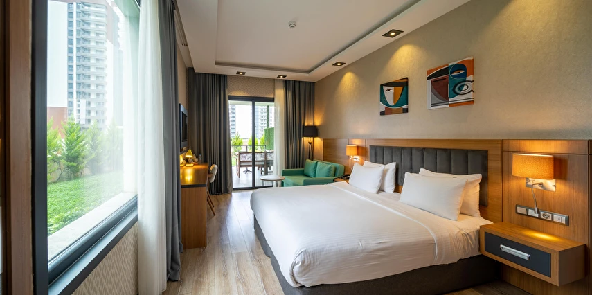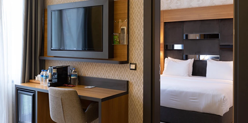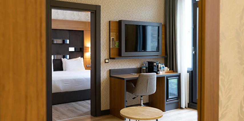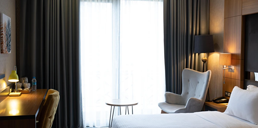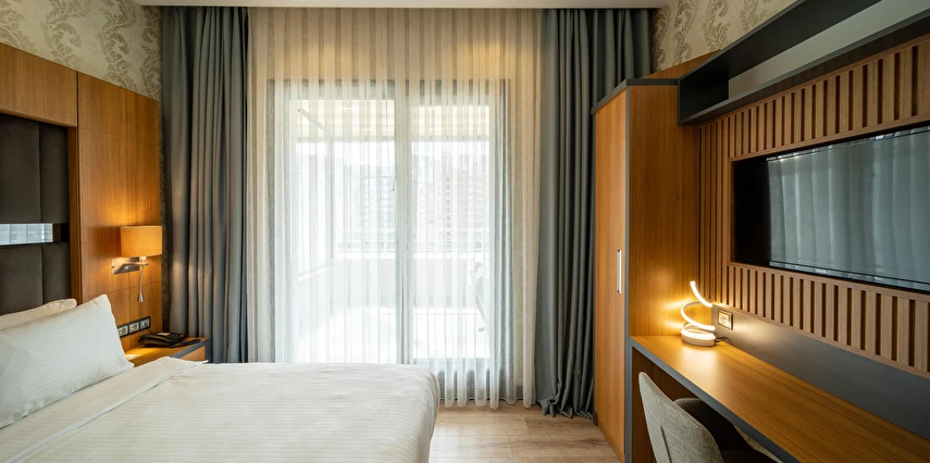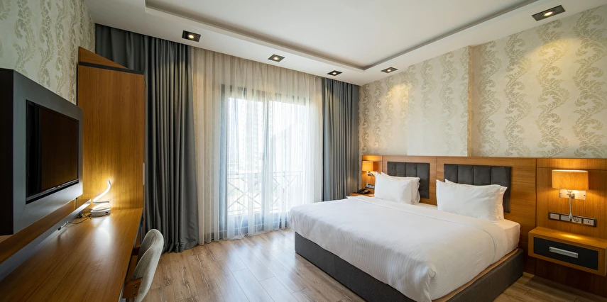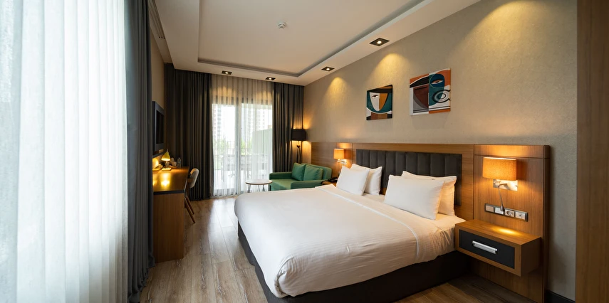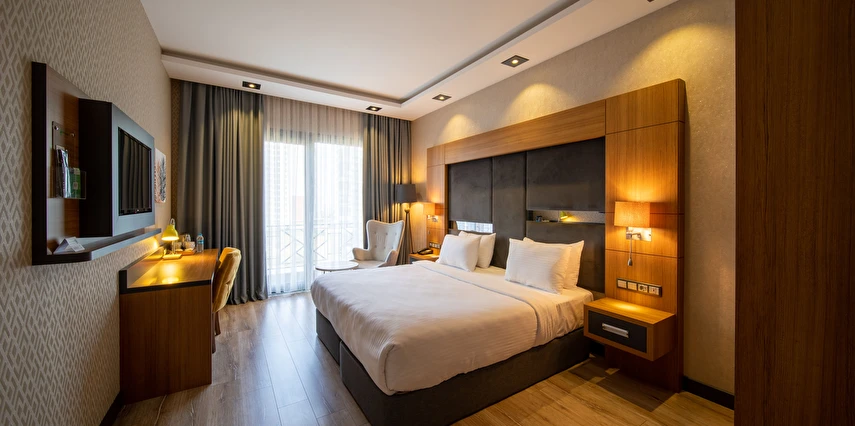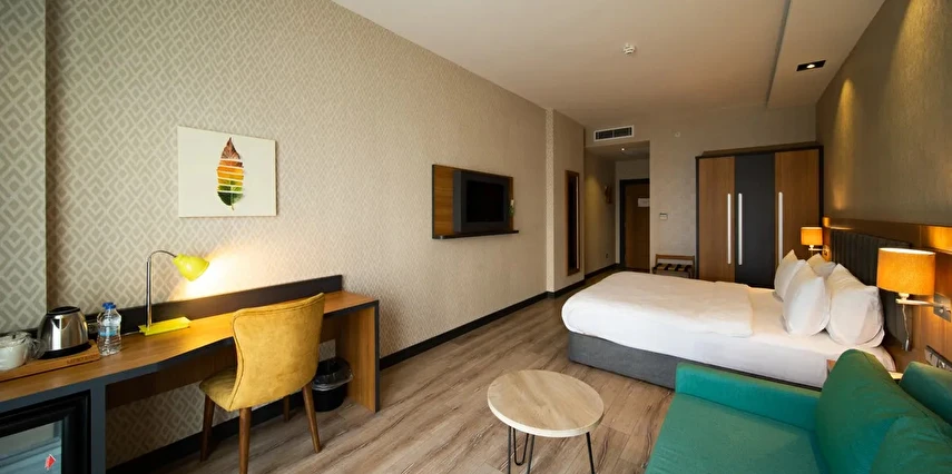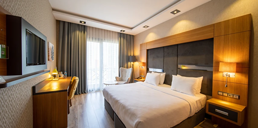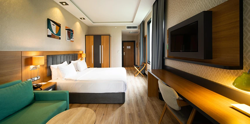Modern ve konforlu odalarımız; oda kasası, çay-kahve yapma imkânı ve ücretsiz Wi-Fi gibi olanaklarla misafirlerimizin ihtiyaçları düşünülerek tasarlanmıştır.