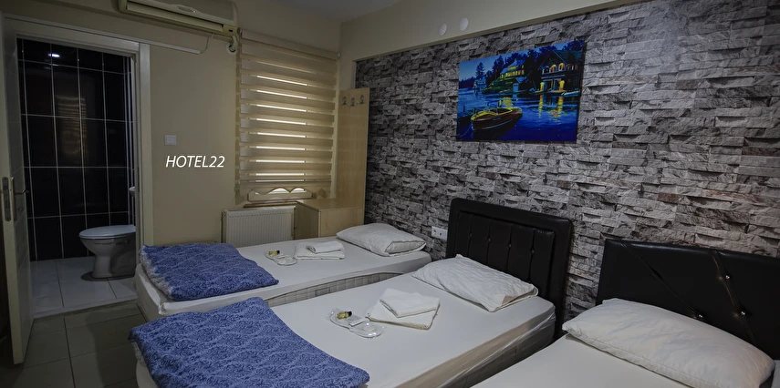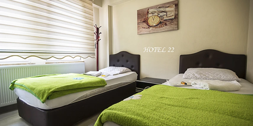 Otel 22, misafirlerine yıl boyunca konfor dolu bir konaklama hizmeti sunmaktadır. Misafirler her sabah doyurucu bir kahvaltı ile güne enerjik bir başlangıç yapabilmektedir. Otel 22'nin konaklama odalarının her biri özel banyolu olup, konforunuz için 24 saat sıcak su, havlular, banyo terlikleri ve malzemeleri tesis tarafından temin edilmektedir. Odalarda düzenli oda temizlik hizmeti verilmektedir.