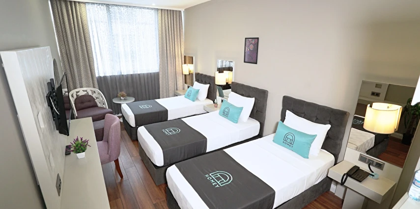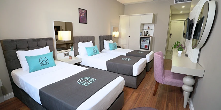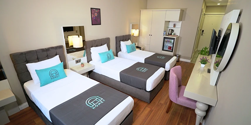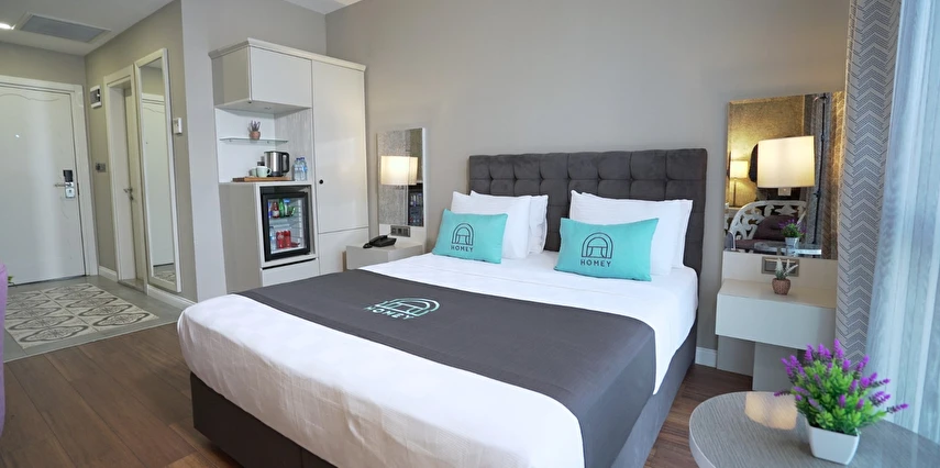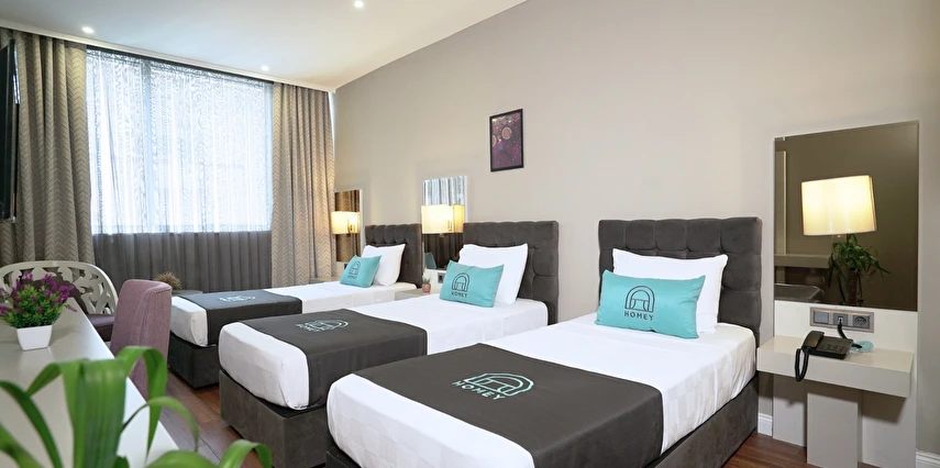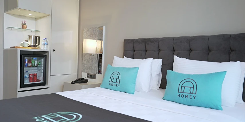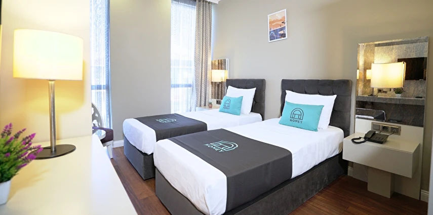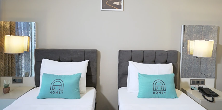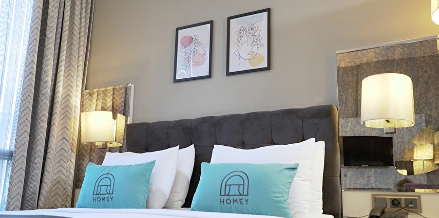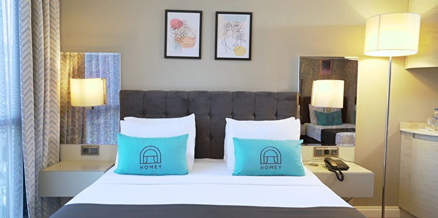 Homey Airport Hotel, İstanbul Havalimanı’na yaklaşık 12 km, şehir merkezine ise 25 km mesafede konumlanmıştır; bu sayede hem dinlenme hem de şehir keşfi için ideal bir başlangıç noktasıdır.