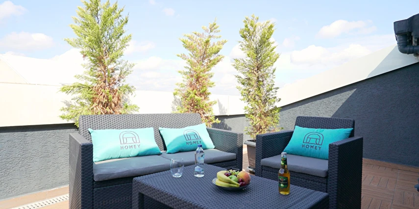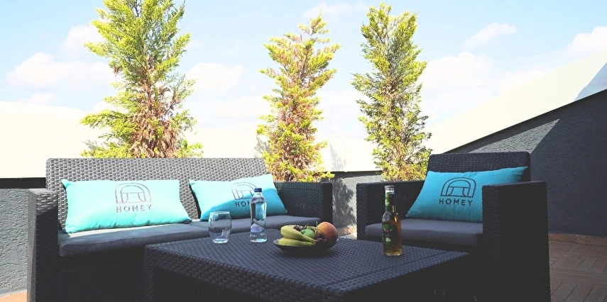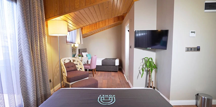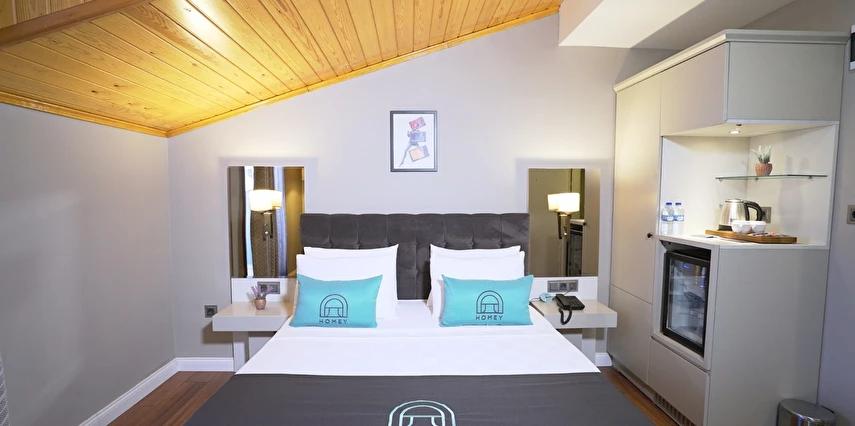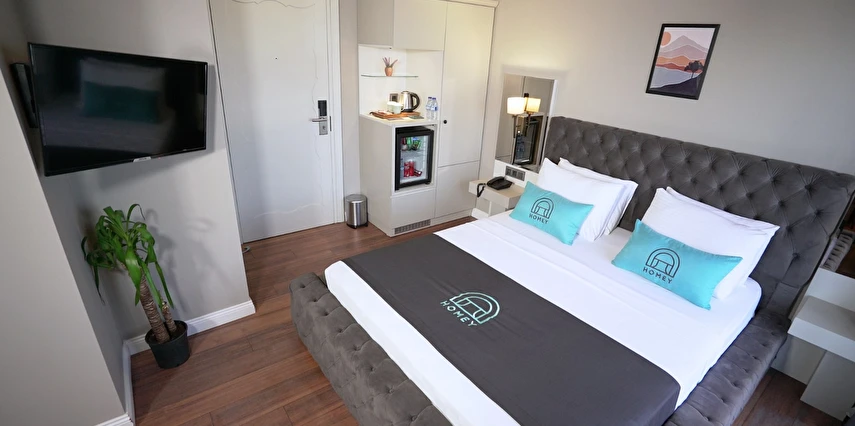 Daha Fazla GösterHomey Airport Hotel, İstanbul’un Arnavutköy bölgesinde yer alan ve misafirlerine adeta ev konforunda bir konaklama deneyimi sunan modern ve samimi bir oteldir. Şehir içi ulaşım ağlarına ve İstanbul Havalimanı’na sadece dakikalar uzaklıktaki konumuyla iş ya da tatil amaçlı seyahat edenlere ideal bir seçenek sunar.