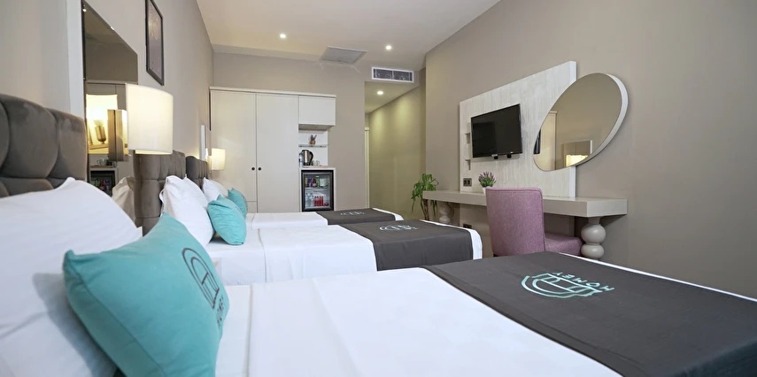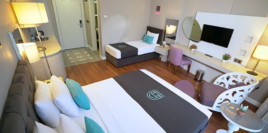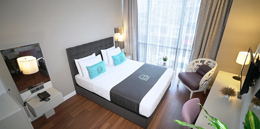 Otel, modern ve konforlu odalar, zengin açık büfe kahvaltı servisi, ücretsiz Wi-Fi erişimi ve 24 saat oda servisi gibi geniş kapsamlı hizmetlerle donatılmıştır. Misafirlerin sağlık ve konforu otelin en önemli önceliği olup tüm alanlar titizlikle temizlenerek sizlere huzurlu bir konaklama imkânı sağlar.