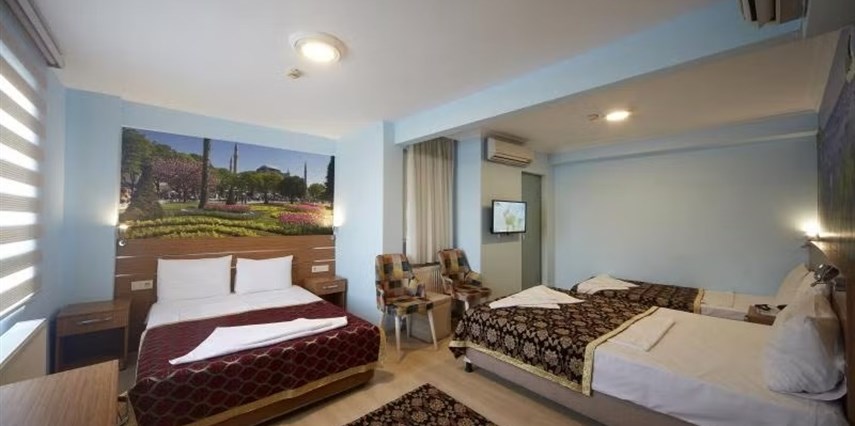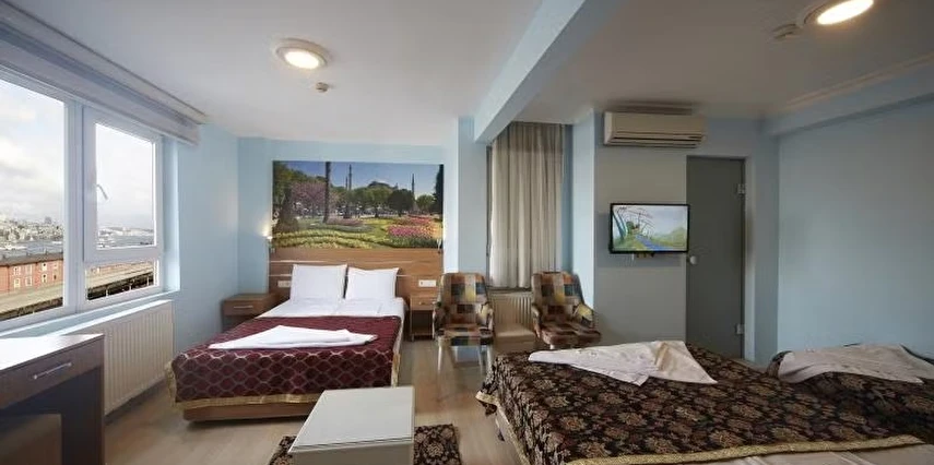 Otel, şehir içi ulaşım noktalarına ve önemli turistik yerlere kolay erişim imkânı sağlayan merkezi konumuyla öne çıkar. Sultanahmet, Kapalıçarşı, Ayasofya ve Topkapı Sarayı gibi tarihi noktalara kısa mesafede yürüyüşle ulaşabilir; İstanbul’un eşsiz kültürünü keşfetmeye hemen başlayabilirsiniz..