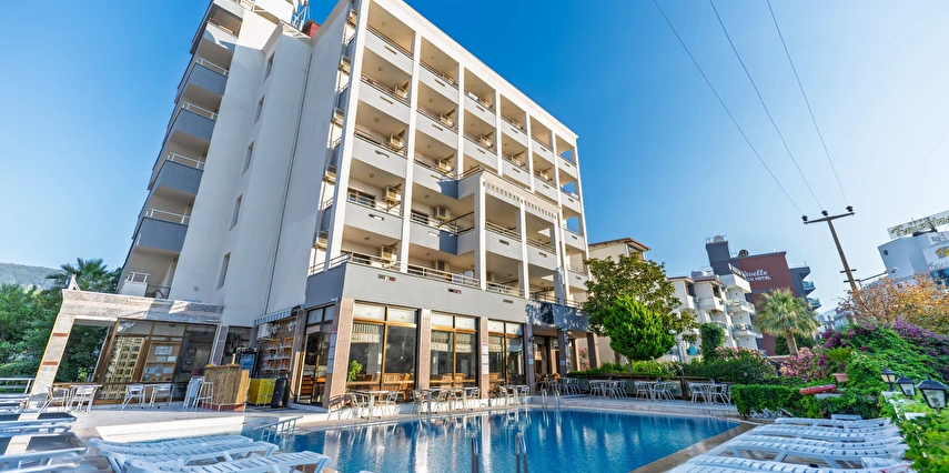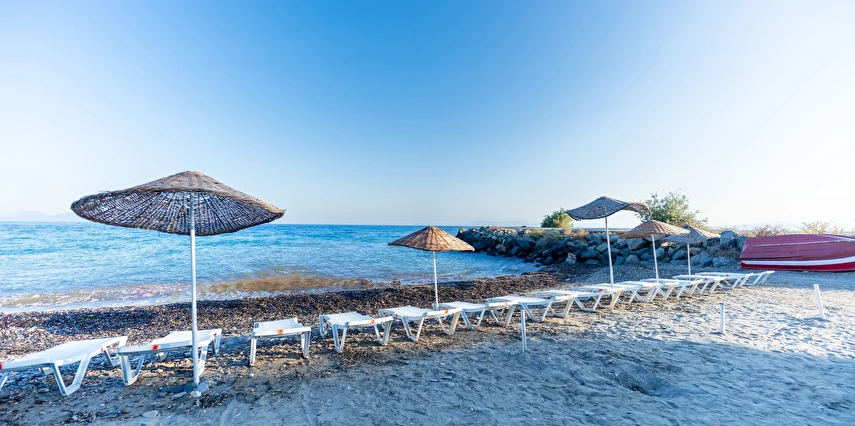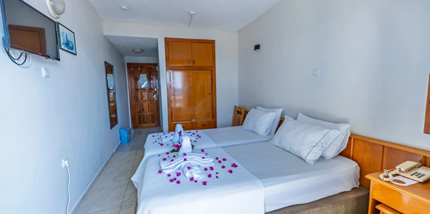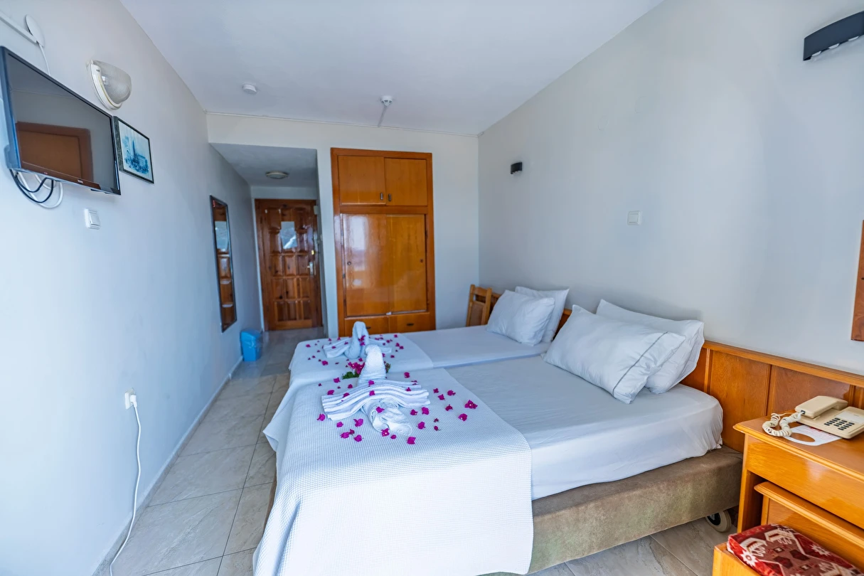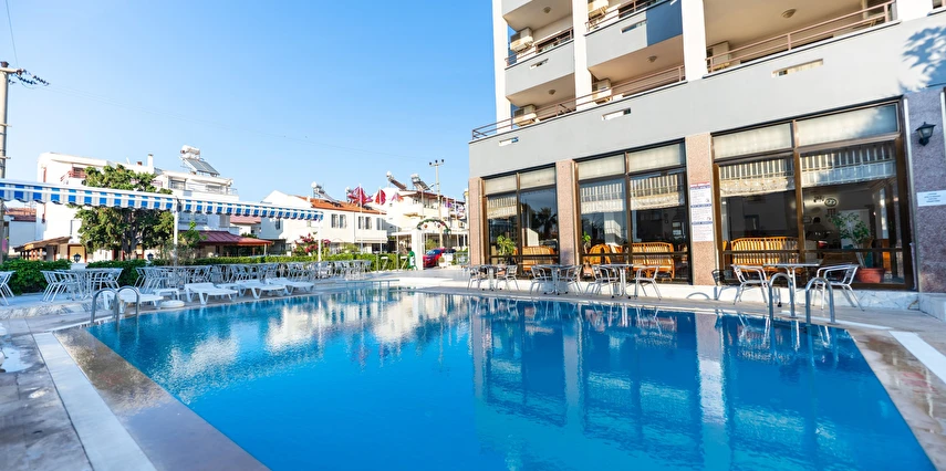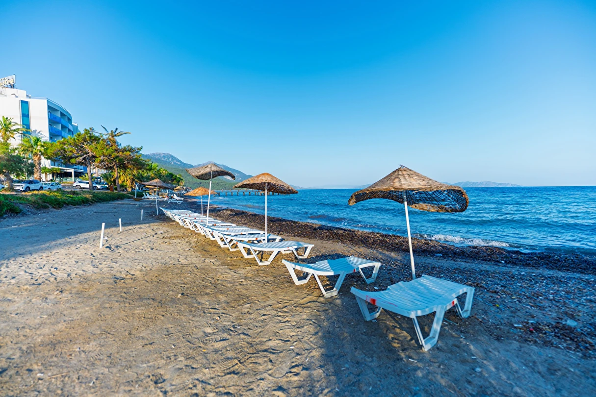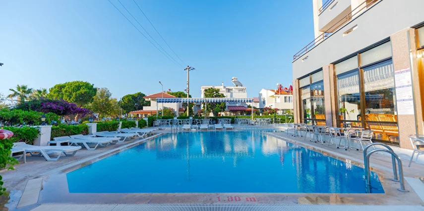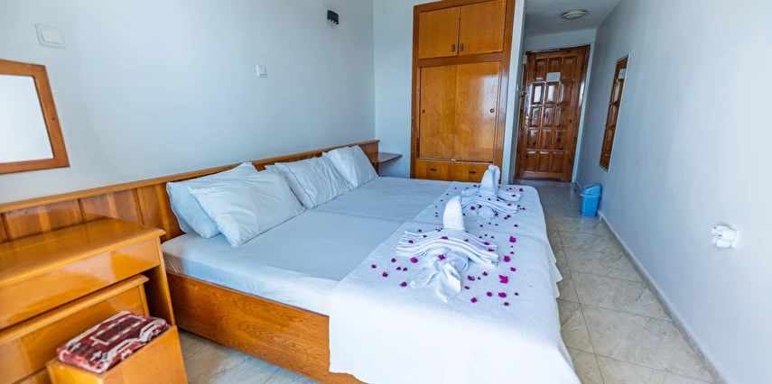 Deniz ve dağ manzaralı, 7/24 sınırsız internet erişimli odalarıyla, çocuklar ve büyükler için yüzme havuzuyla, ege ve akdeniz mutfağından örneklerin sunulduğu restoranımızla tüm yaz sezonu boyu siz değerli misafirlerimize hizmet vermekteyiz.