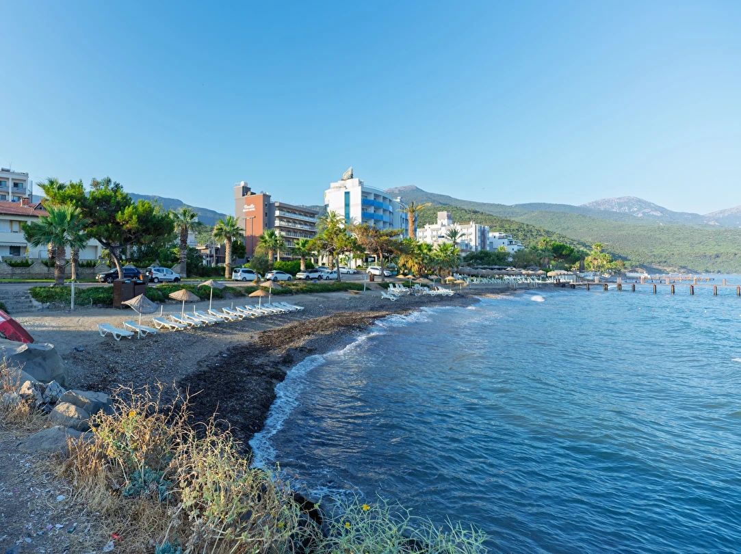 Kuşadası’nın şirin beldesi Güzelçamlı’da bulunan Çidihan Hotel, Kuşadası'na 23 km, Milli Park'a 500m, İzmir havaalanına 95 km. uzaklıktadır.