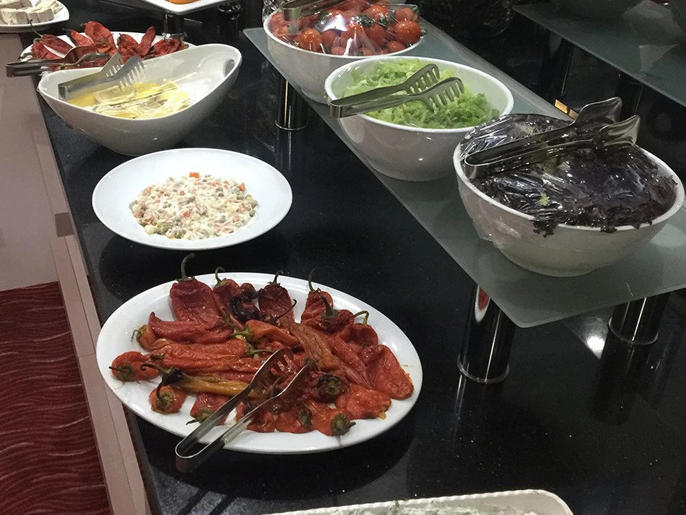Otelin restoranında, her damak zevkine hitap etmesi düşünülerek hazırlanmış çeşitli yiyecekler sunuluyor. Grand Kayalar Hotel kahvaltıyı açık büfe olarak servis ediyor. Türk mutfağından tatların bulunduğu bu kahvaltının tadını şehrin unutulmaz manzarası eşliğinde çıkarabilirsiniz.