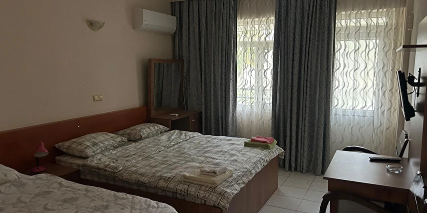 Otelin konforlu ve sade şekilde dekore edilmiş odaları, rahat bir konaklama sunarken; açık yüzme havuzu ve dinlenme alanları gün boyunca keyifli vakit geçirmenize olanak tanır. Gürültüden uzak yapısı sayesinde özellikle sakinlik arayan misafirler için ideal bir ortam oluşturur.