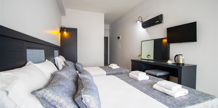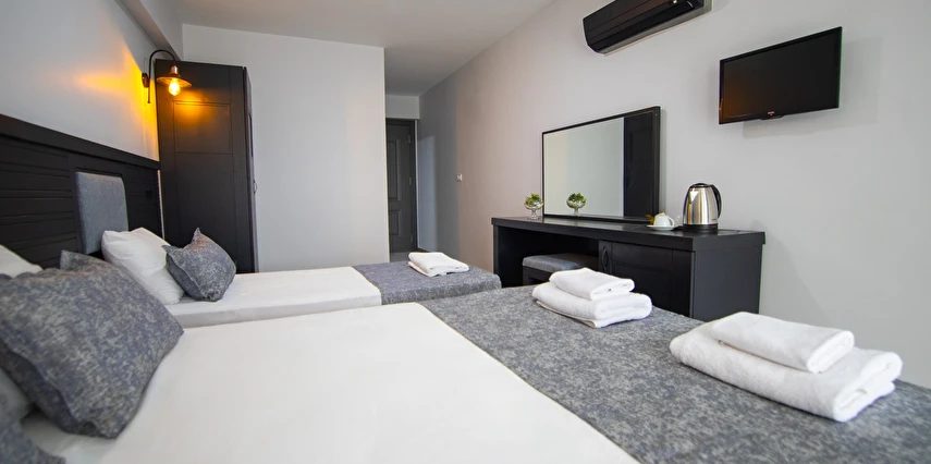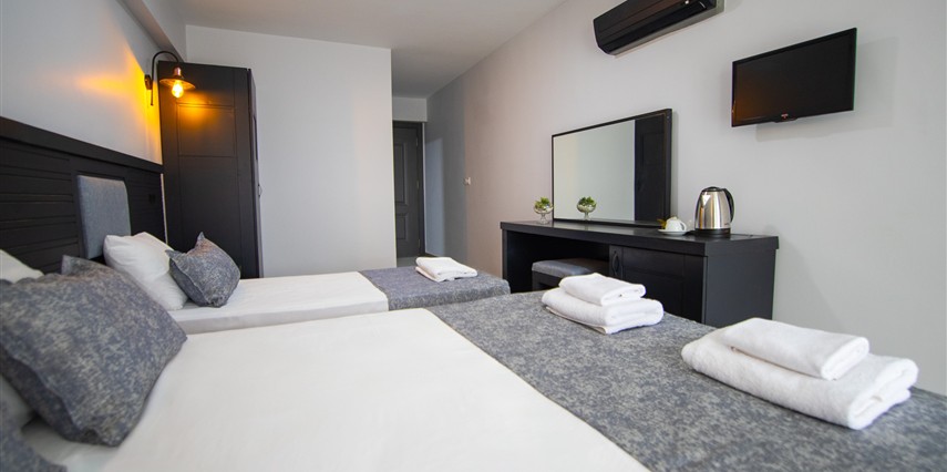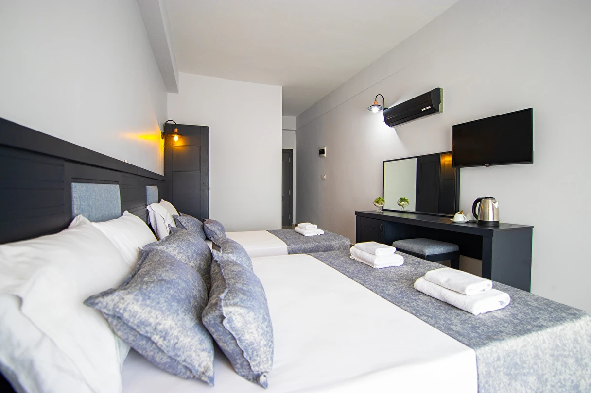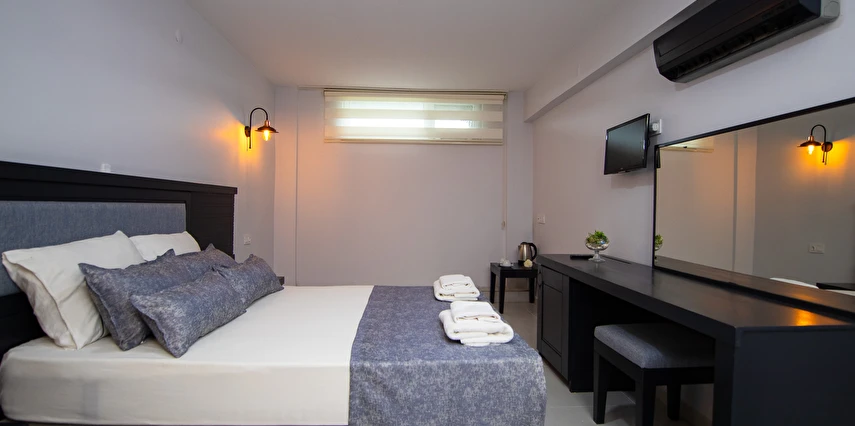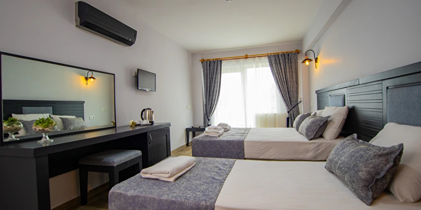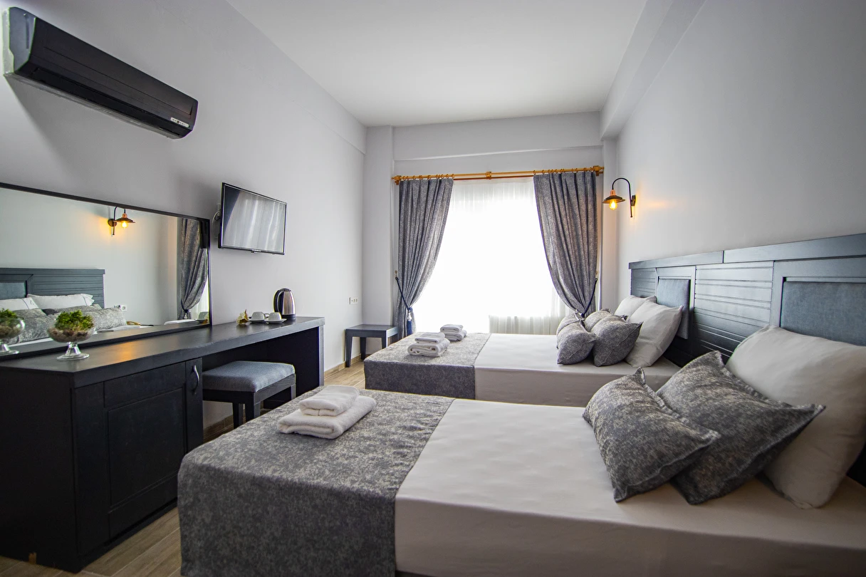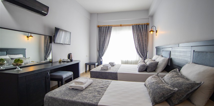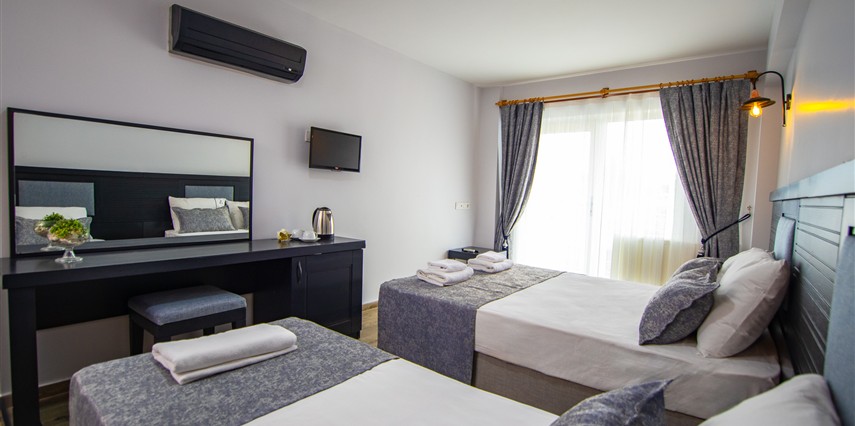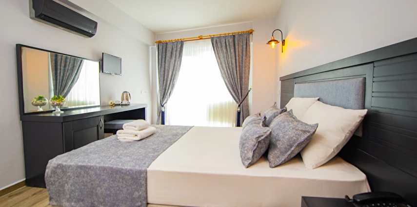 Modern olanakların tamamını içeren odalarımızda; ücretsiz internet bağlantısı, duşa kabinli banyo, WC, saç kurutma makinası, havlu seti, klima, LCD televizyon, uydu yayını, minibar, kettle, telefon, 24 saat sıcak su ve banyo malzemeleri standart olarak bulunmaktadır. Rahatınız bizim için ön planda!