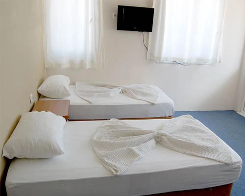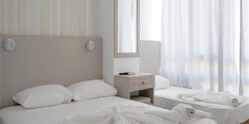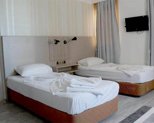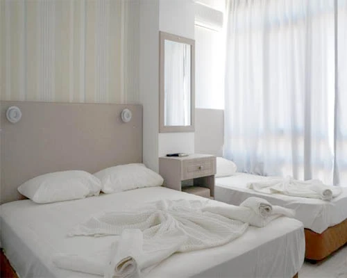 Otelimizde iki kişilik ve aile odalarımız balkonludur. Odalarımızın bir bölümü deniz bir bölümü kara manzaralıdır. Aile odalarımızın tümü deniz manzaralıdır. Üç kişilik odalarımız balkonsuzdur. Plajda sınırlı sayıda şezlong ve şemsiye hizmetimiz vardır.