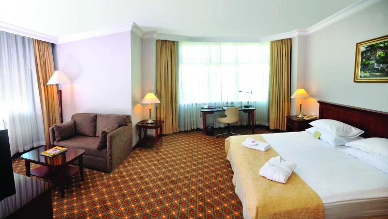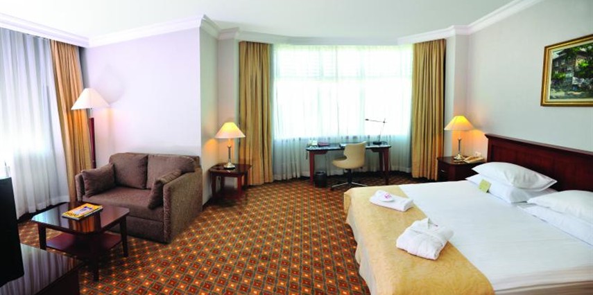 Konfor ve şıklığın bir araya geldiği odalarda misafirlerin ihtiyaç duyabileceği tüm detaylar düşünülmüştür.