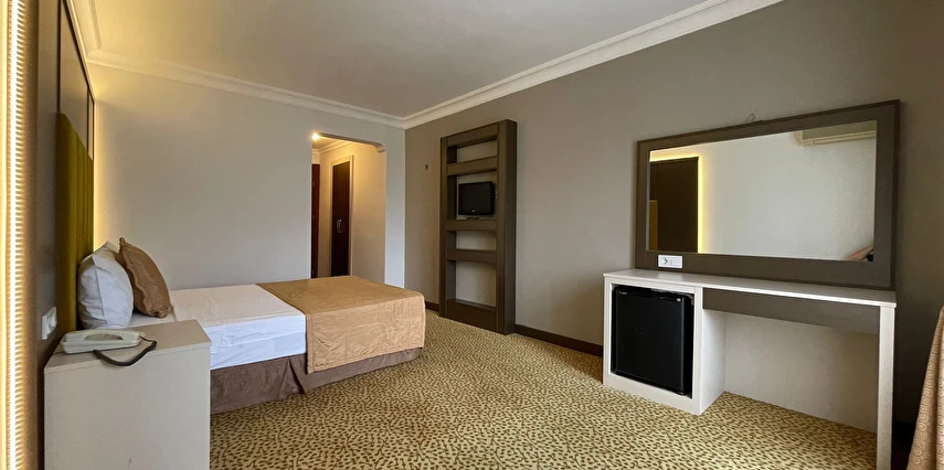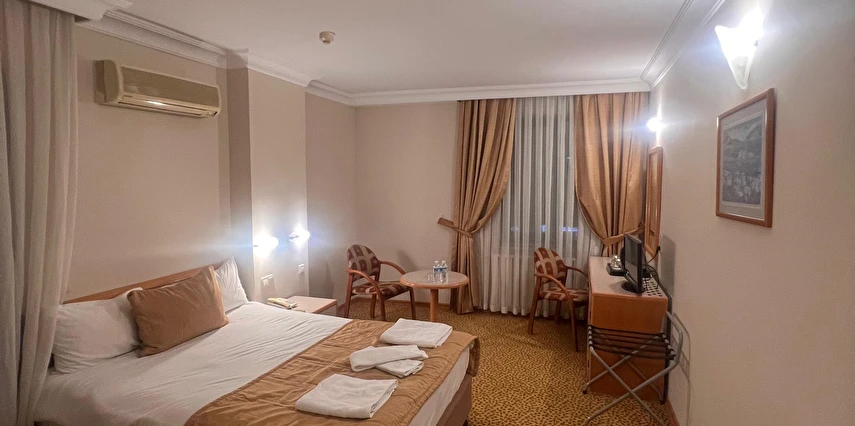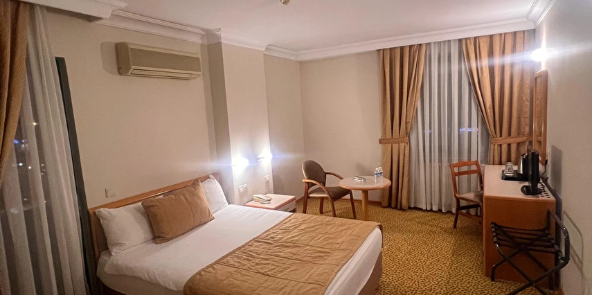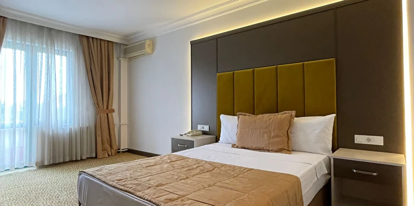 Otelin odaları, konaklama süresince ihtiyaç duyulan temel konforu karşılayacak şekilde düzenlenmiştir. Gün içinde şehirde vakit geçiren veya iş programı olan misafirler için akşamları dinlenmeye uygun bir ortam sunar.