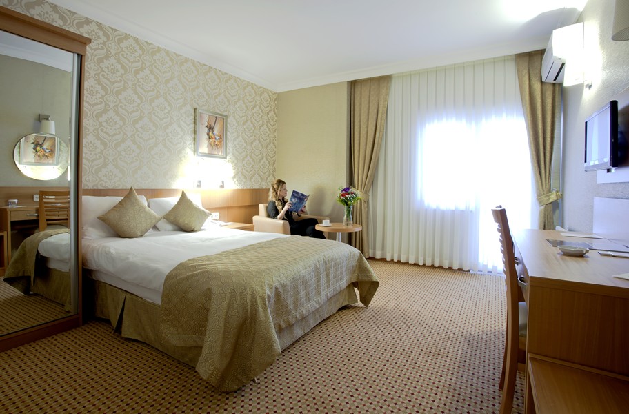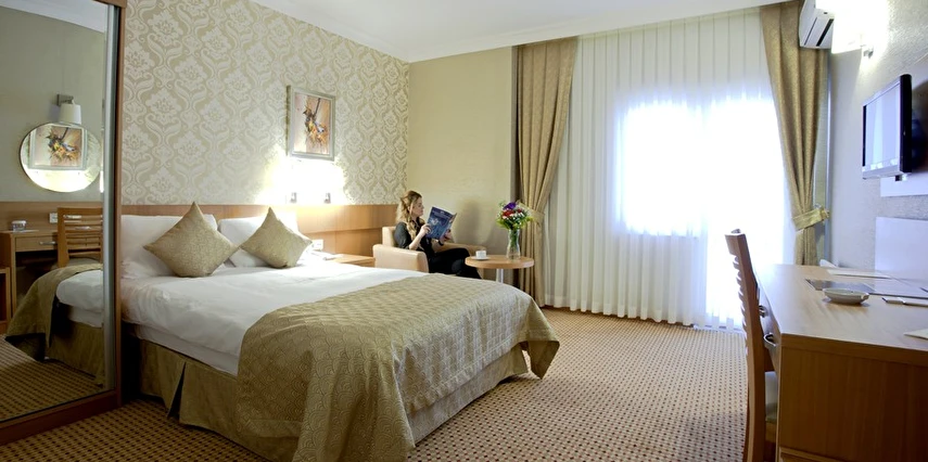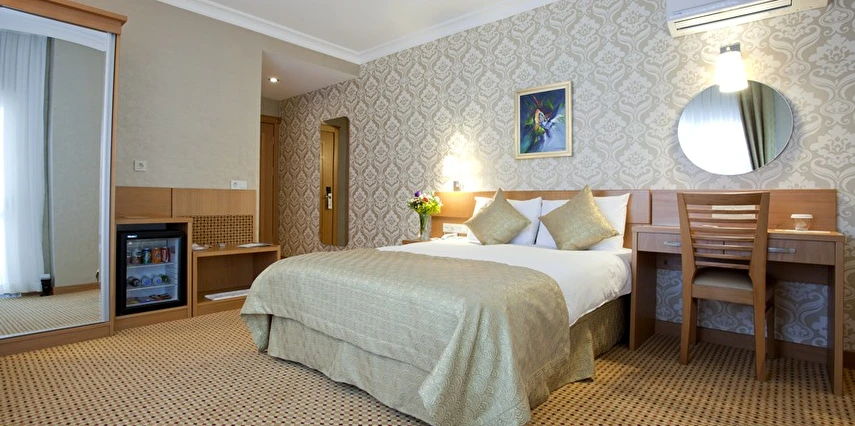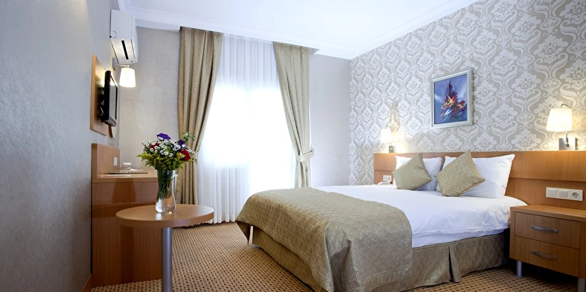 Otelin odaları, konaklama boyunca ihtiyaç duyulan temel konforu karşılayacak şekilde düzenlenmiştir. Gün içinde şehirde vakit geçiren veya iş programı bulunan misafirler için dinlenmeye uygun bir ortam sunar.