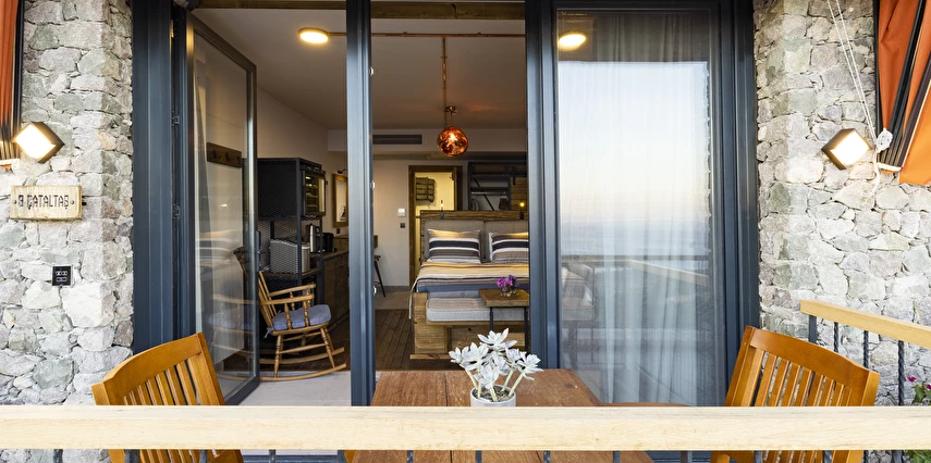 Vita Naturalis, kendi sesini duymayı unutan herkesin çok seveceği bir yer. Çünkü o sesi duymanıza yardım edecek her şey, 4 mevsim burada. Otelimizin hemen altında başlayıp her yeri buğulu bir yeşile boyayan yaşlı zeytinler, onların elinden fırçayı alıp ufka kadar her yeri maviye boyayan güzelim deniz, her sabah sizi yeni bir şarkıyla uyandıracak kuşlarımız ve tüm özgünlüğü, tüm sakinliği ile Büyükhusun Köyü...