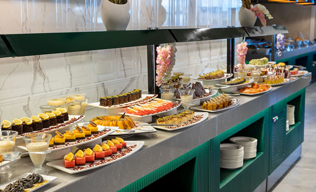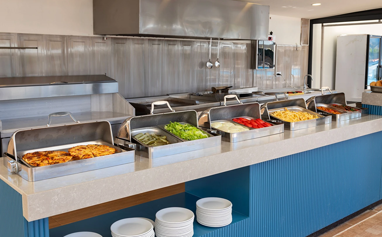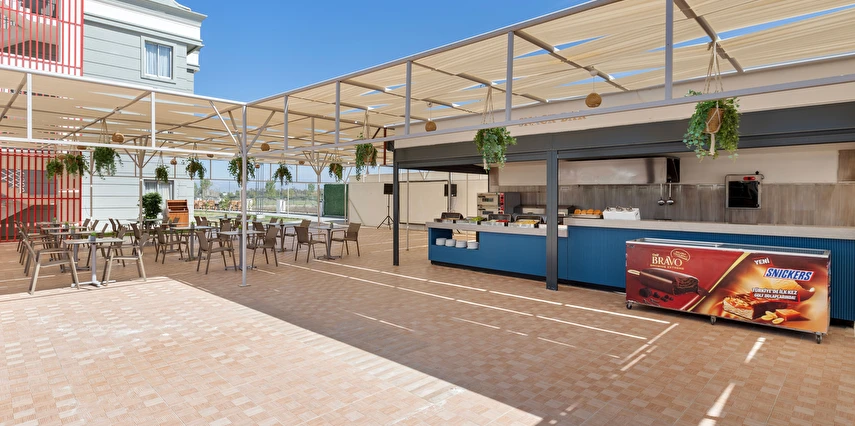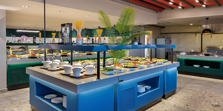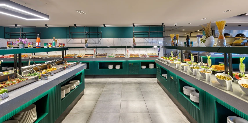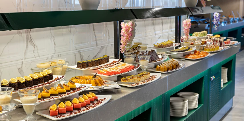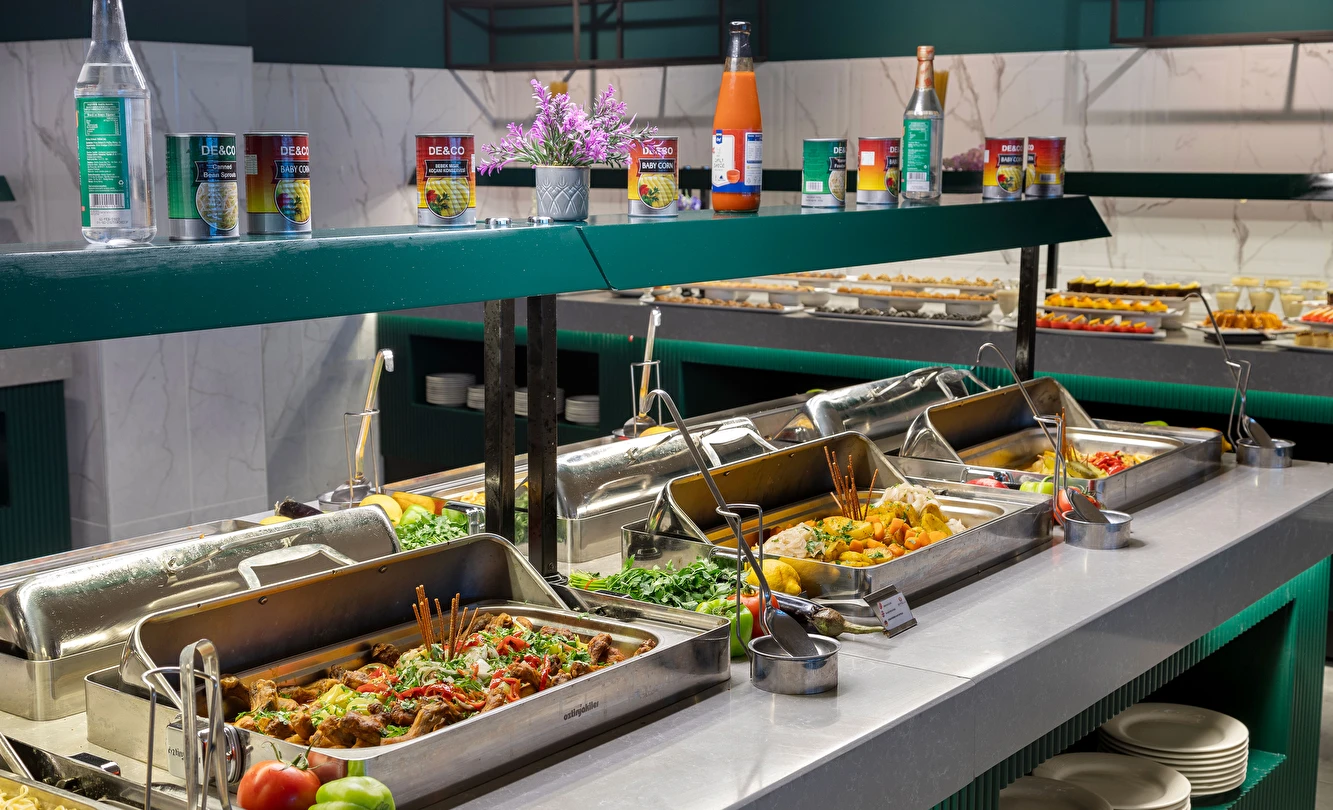 Sabah kahvaltısı, öğle ve akşam yemekleri açık büfe olup, tesisin belirlemiş olduğu markalar dahilinde 10:00 ile 23:00 saatleri arasında yerli alkollü ve alkolsüz içecekler ücretsizdir. Şişeli, import içecekler ve taze sıkılmış meyve suları ücretlidir.