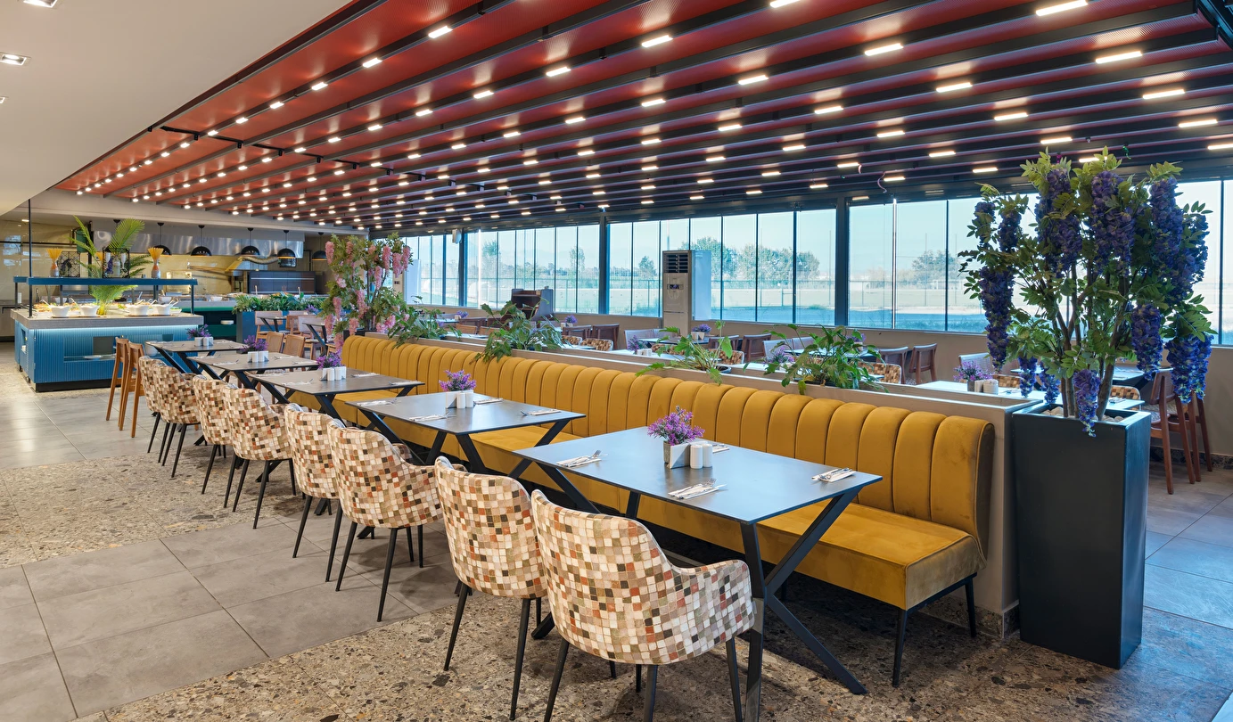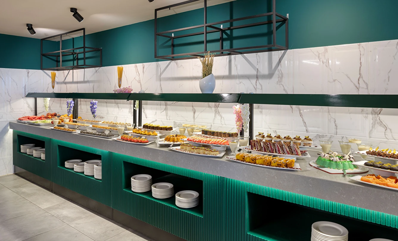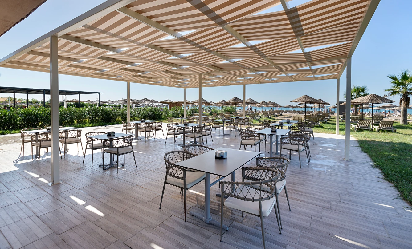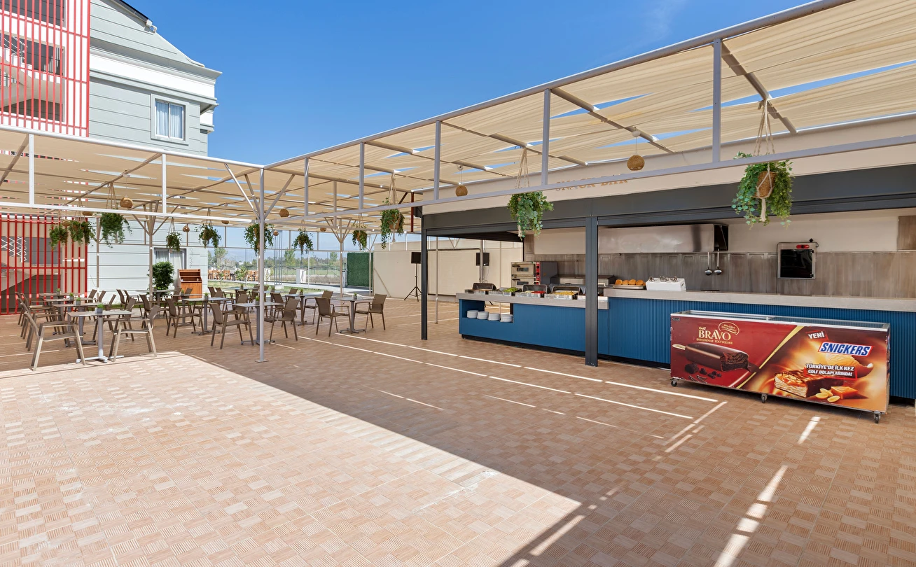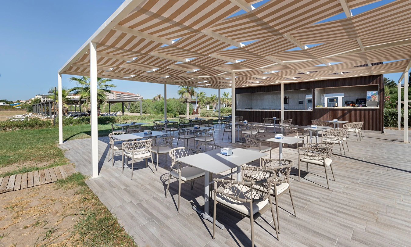 Sabah kahvaltısı, öğle ve akşam yemekleri açık büfe olup, tesisin belirlemiş olduğu markalar dahilinde 10:00 ile 23:00 saatleri arasında yerli alkollü ve alkolsüz içecekler ücretsizdir. Şişeli, import içecekler ve taze sıkılmış meyve suları ücretlidir.