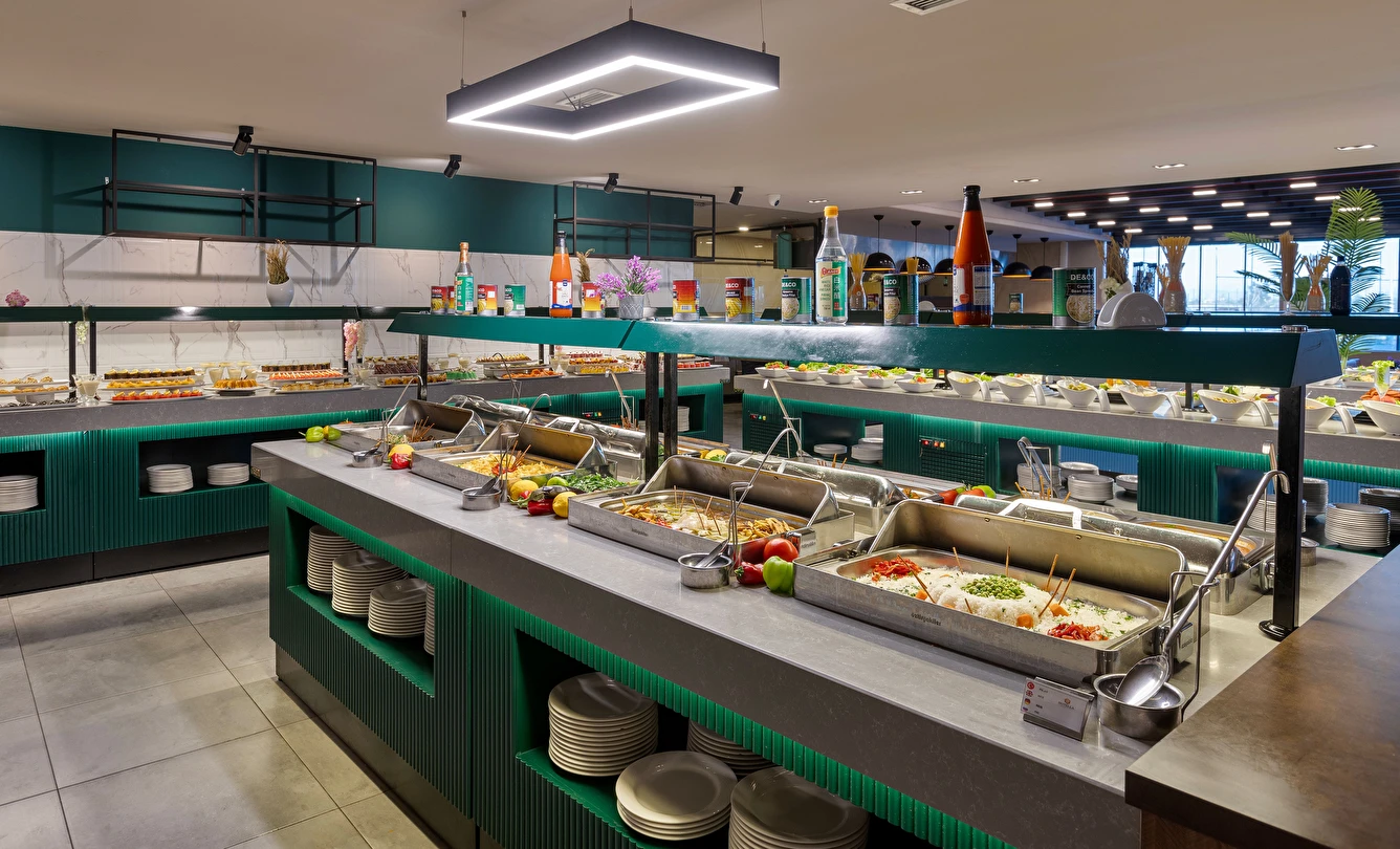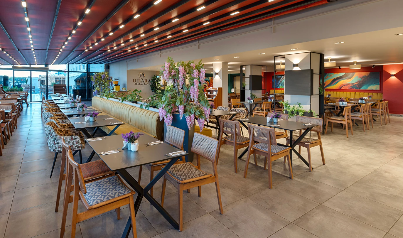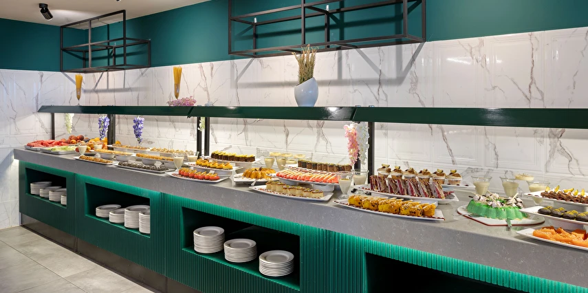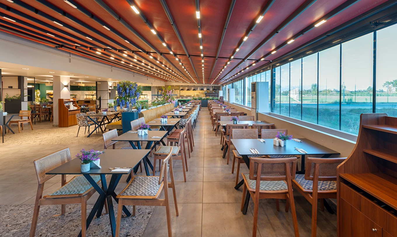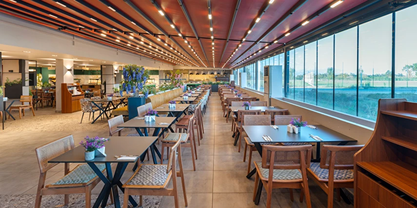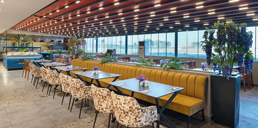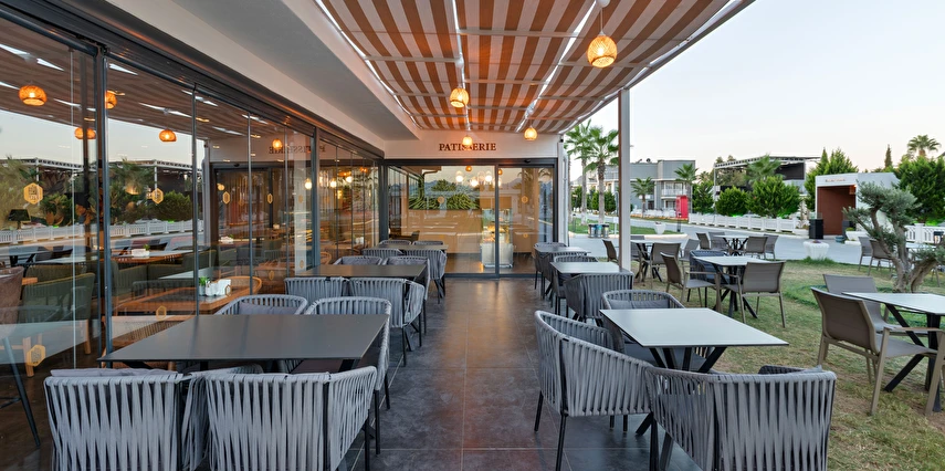Sabah kahvaltısı, öğle ve akşam yemekleri açık büfe olup, tesisin belirlemiş olduğu markalar dahilinde 10:00 ile 23:00 saatleri arasında yerli alkollü ve alkolsüz içecekler ücretsizdir. Şişeli, import içecekler ve taze sıkılmış meyve suları ücretlidir.