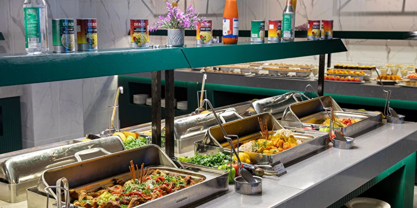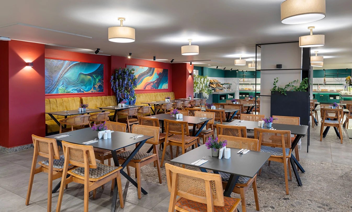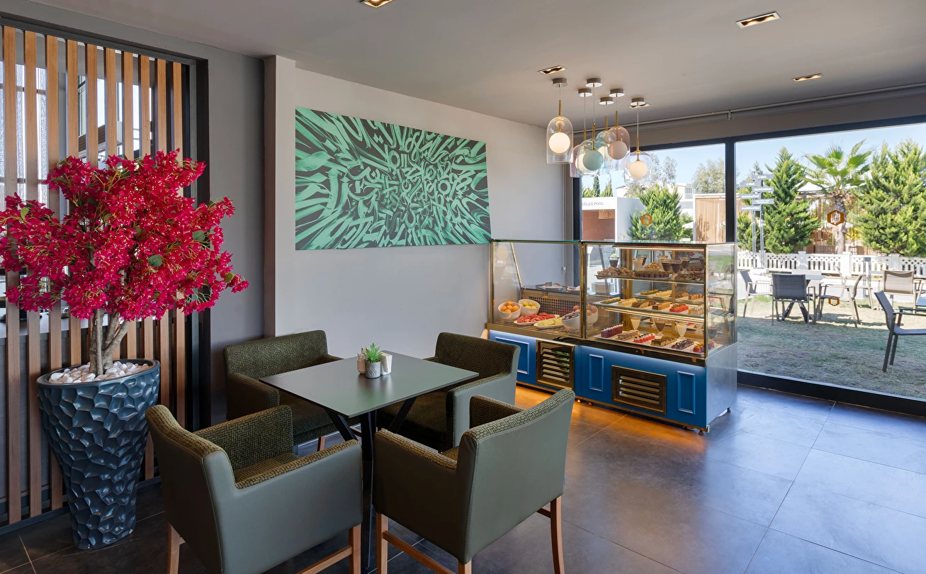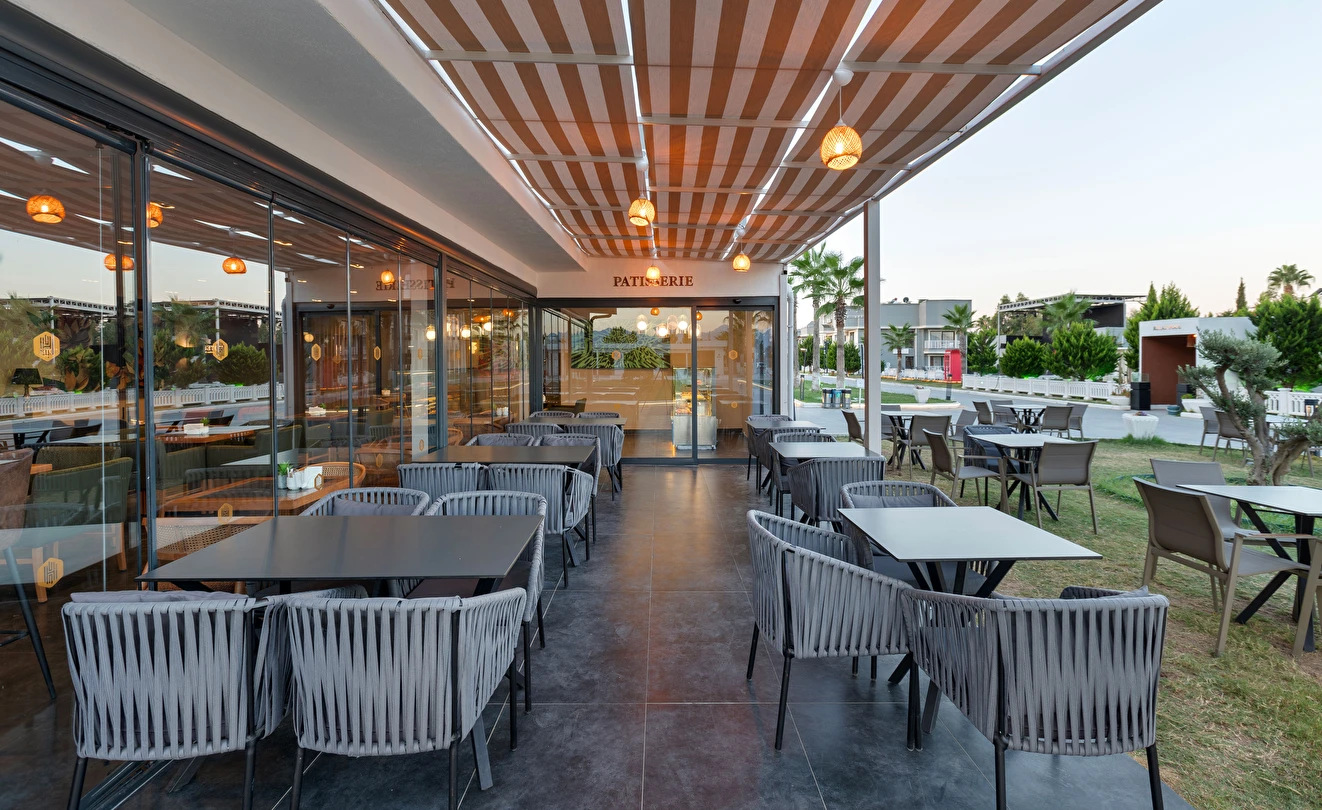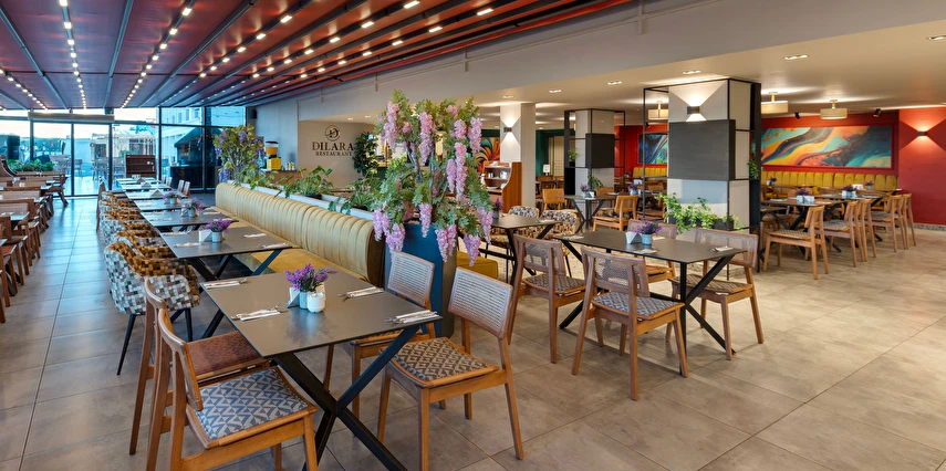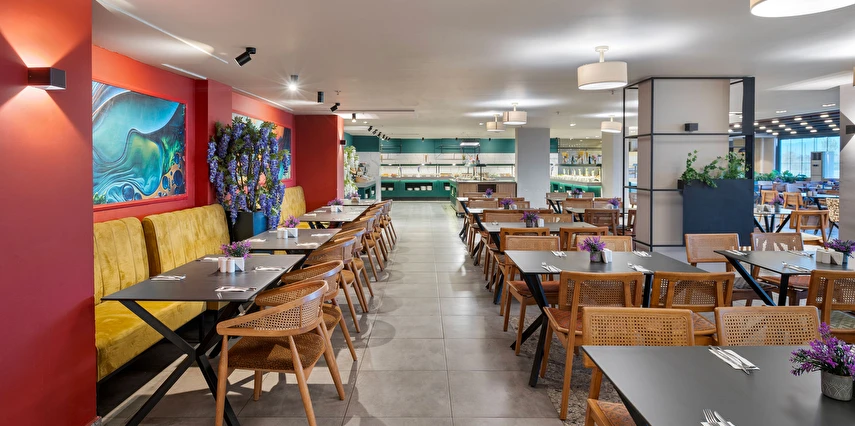 Sabah kahvaltısı, öğle ve akşam yemekleri açık büfe olup, tesisin belirlemiş olduğu markalar dahilinde 10:00 ile 23:00 saatleri arasında yerli alkollü ve alkolsüz içecekler ücretsizdir. Şişeli, import içecekler ve taze sıkılmış meyve suları ücretlidir.